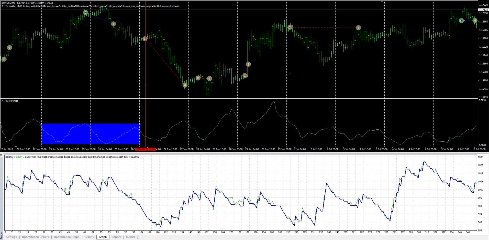 Статистика:За последний год, с июля 2017 года по июль 2018 года стратегия показала результат в районе +2200 пунктов. Максимальная просадка не превышала 150 пунктов (все данные в пунктах считались по 4-х значным котировкам).