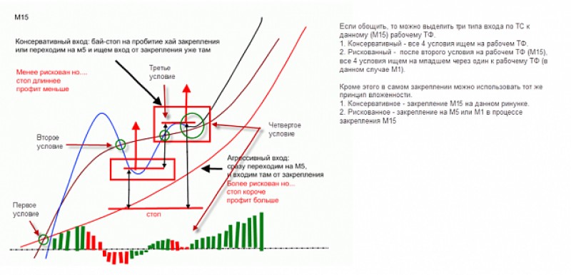 Если машки пересеклись, а рси тупит около 50 и никак не хочет прорвать, можно найти после пересечения фрактал и поставить отложник над\под ним.