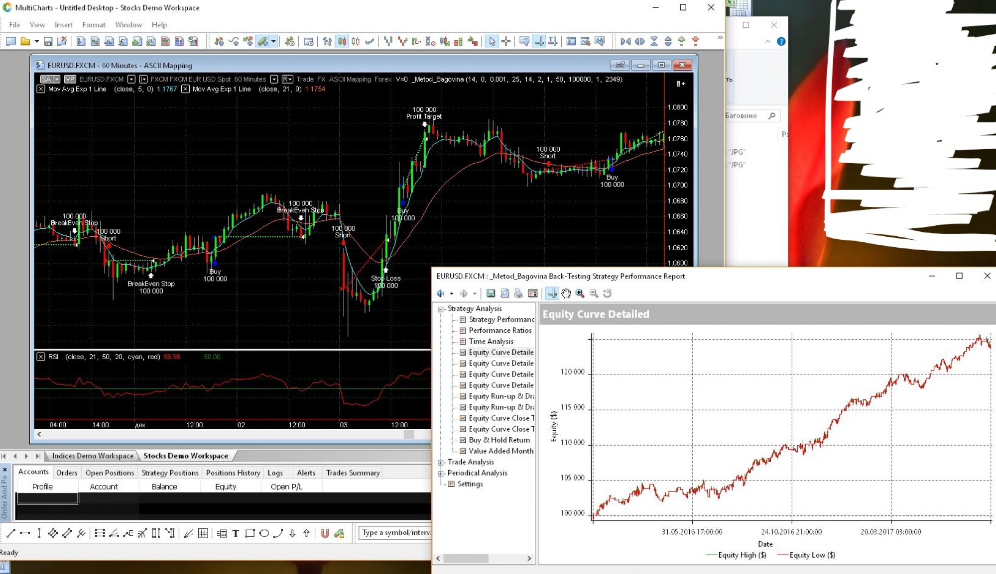 Написал робота для Multicharts для проверки стратегии. Все делал так как Сергей описывал в своем видео теста стратегии. Результат выглядит конечно не так радужно. Я не исключаю что глаз опытного трейдера фильтрует какие-то сигналы. Но сам сигнал — так себе.
