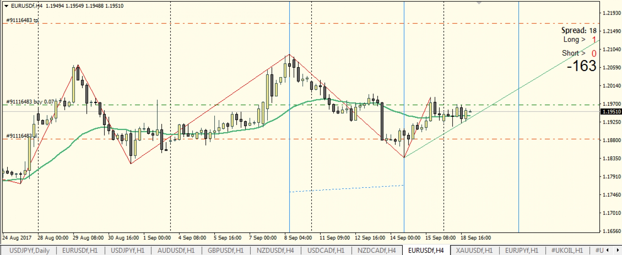 В соответствии с п. 6) Если очередная четырех-часовая свеча закрывается выше/ниже трендовой линии, то из данной сделки выходим по текущей рыночной цене.