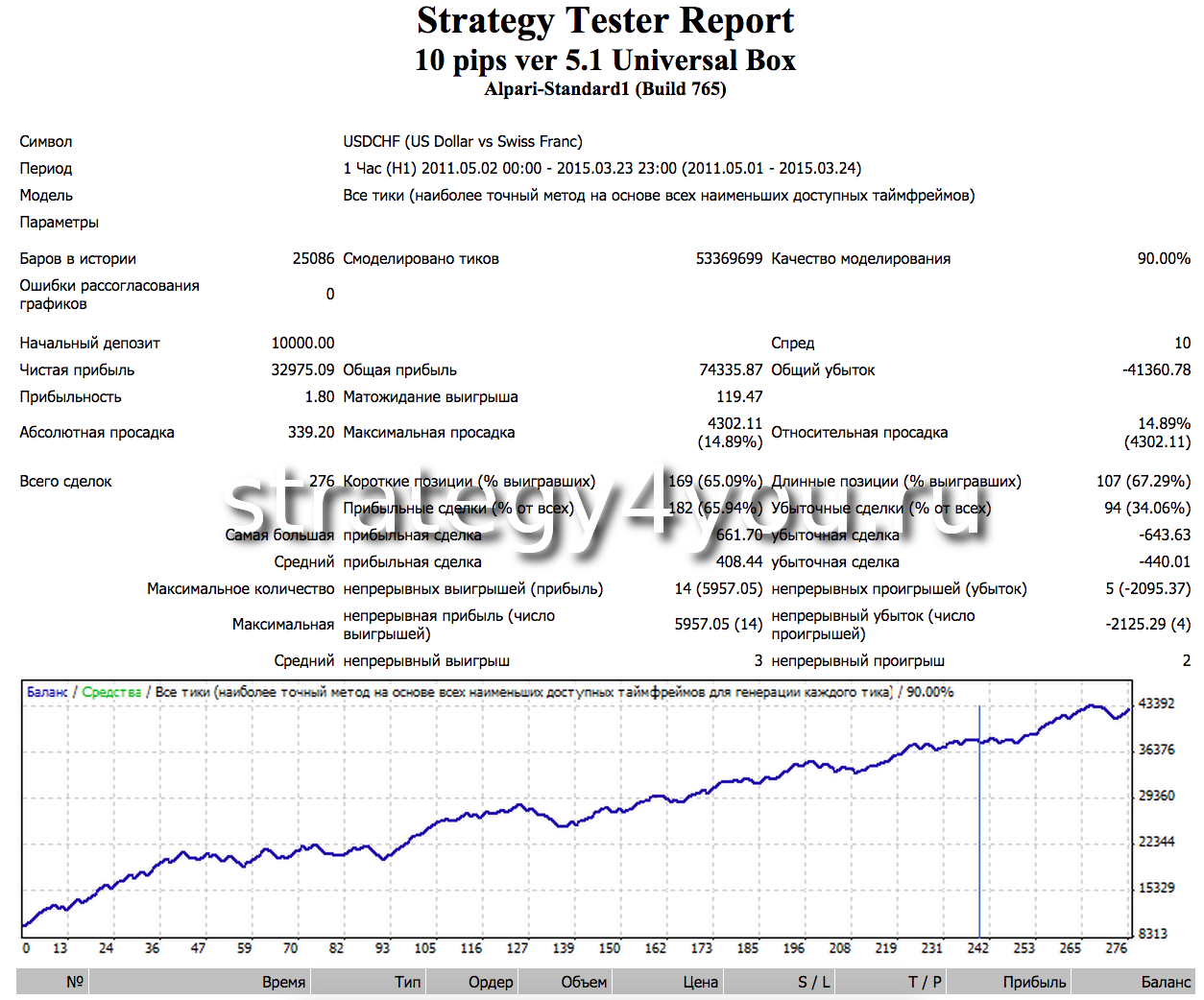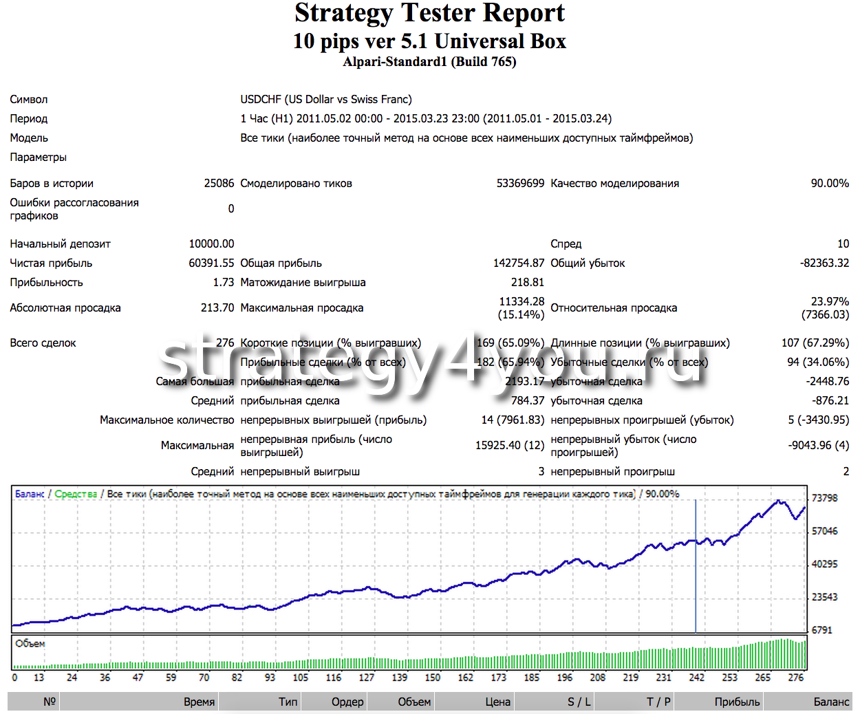 2) Еще раз хотелось бы отметить, что тесты советника 10 pips ver 5.1 Universal Box и соответственно стратегии Night CHF проводились мной в августе 2014 г., поэтому сделки в тесте с начала сентября и по сегодняшний день, это ни что иное как форвард тест стратегии, и это сделки которые реально были открыты опираясь на исторические данные с мая 2011г. по август 2014г.