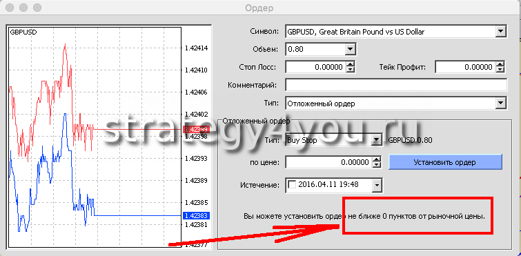 Обратите внимание у данного брокера можно выставить уровни стопа и профита на расстоянии в ноль пунктов от ордера!