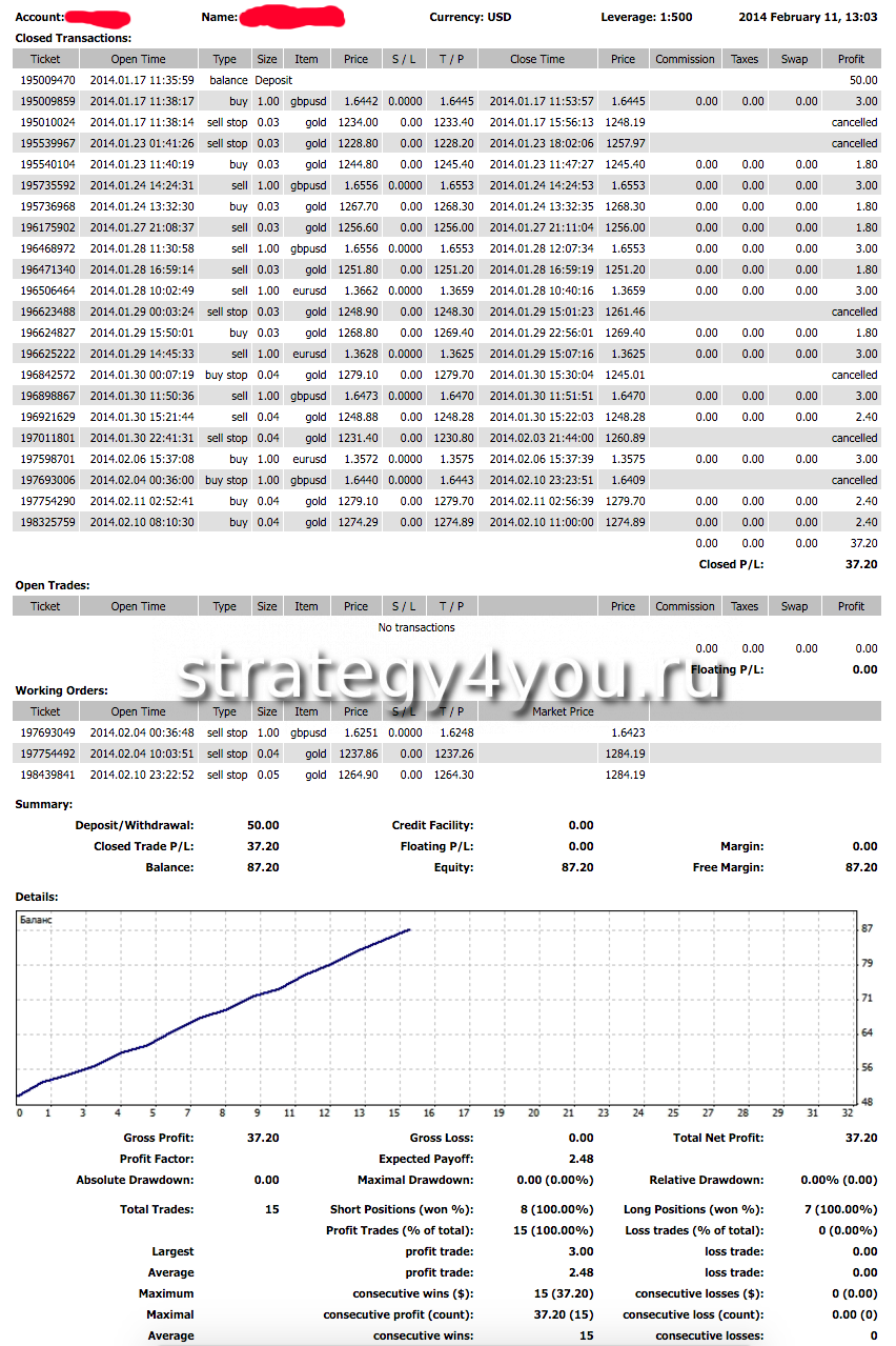 И в завершении прикрепляю отчет автора стратегии, который он мне прислал: