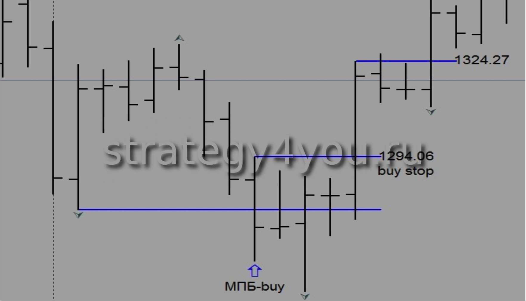 Голое закрытие МПБ-buy — это когда пробойный бар (МПБ-buy) является минимальным баром после пробоя синей линии!
