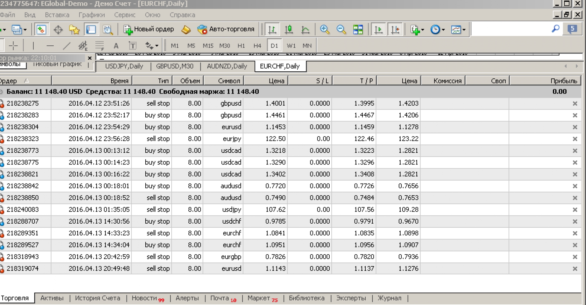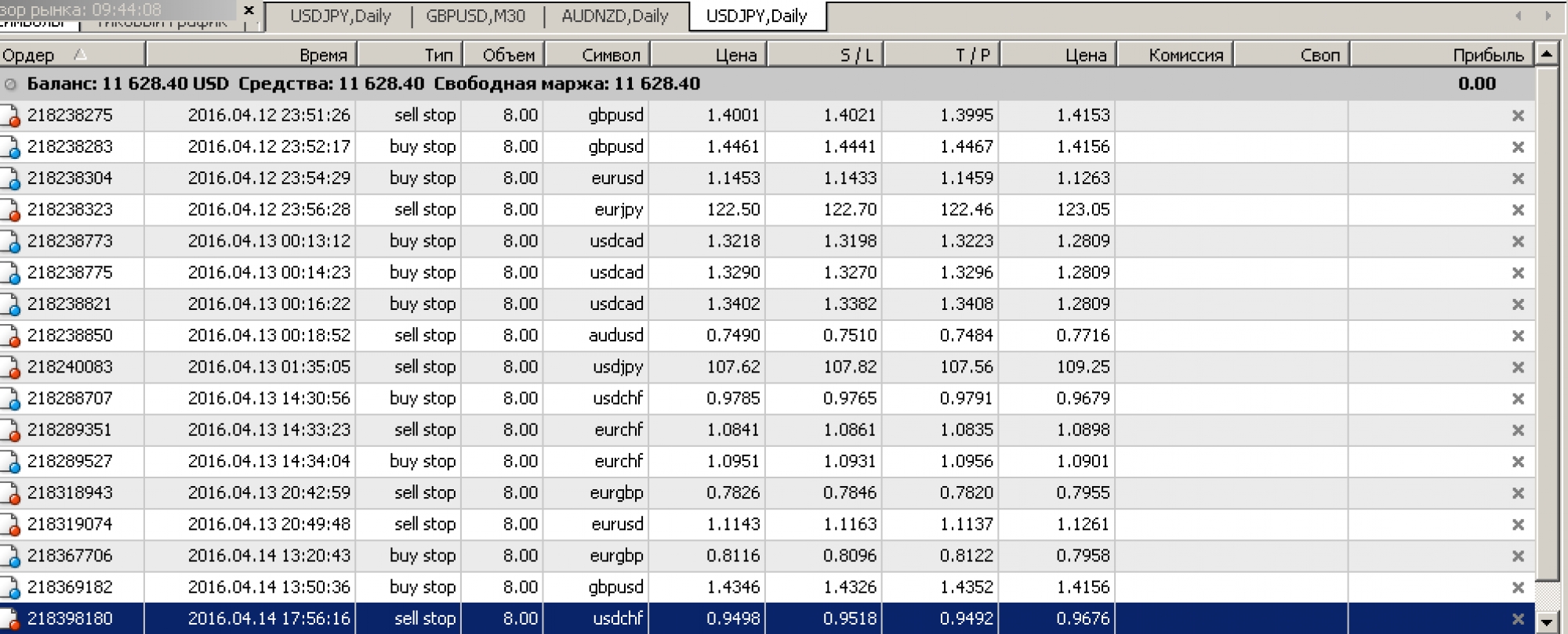 Стопы, профит, объемы (лоты):
