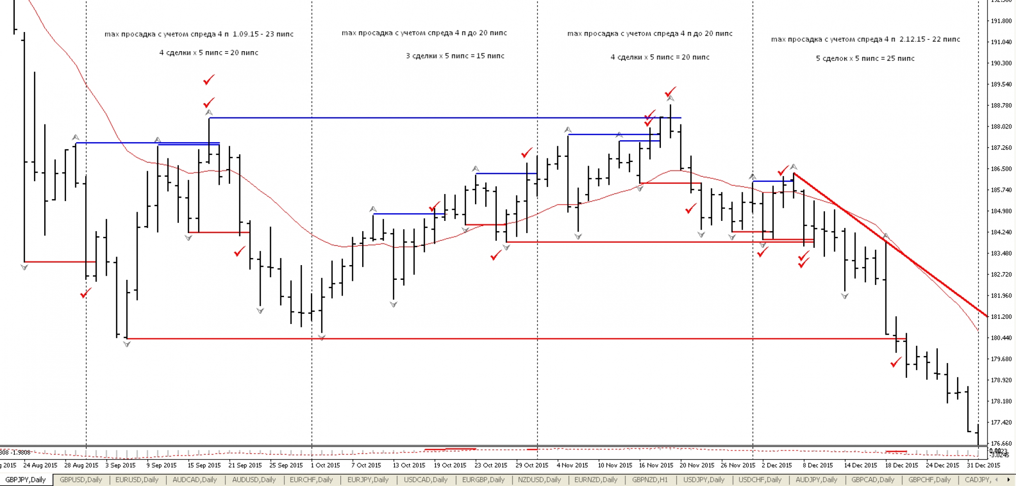 GBPJPY — пока протестировал 4 месяца. Кто хорошо знаком с фракталами, посмотрите, возможно у меня есть ошибки.