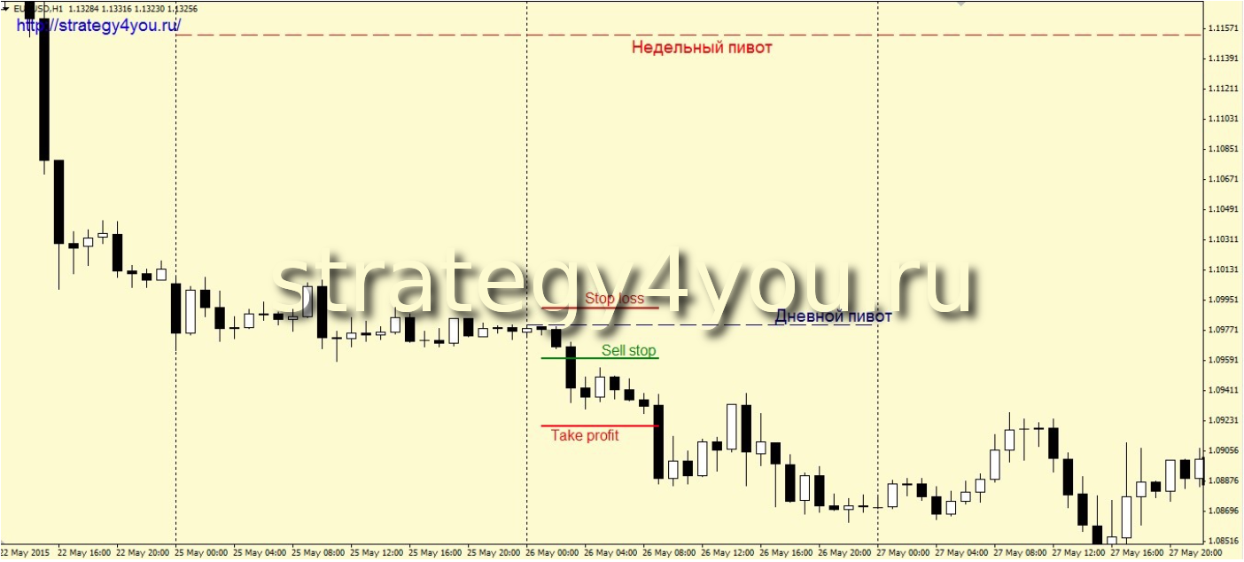 На закрытии же каждого отдельного дня высчитываем дневной пивот на следующий день для определения точки входа.