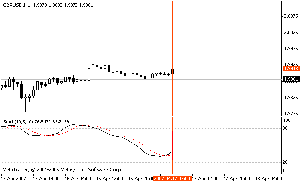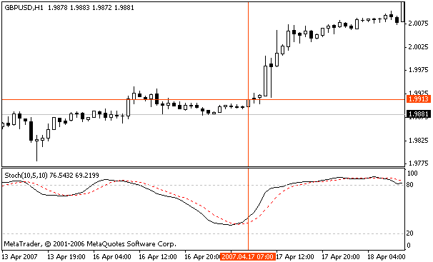 Цифры на втором мониторе показывают, когда закончатся скачки цены на самом маленьком интервале, и можно будет открывать сделку. Для этих целей используют стохастический осциллятор (10, 5, 10), разметка которого отображает зоны перепроданности и перекупленности.