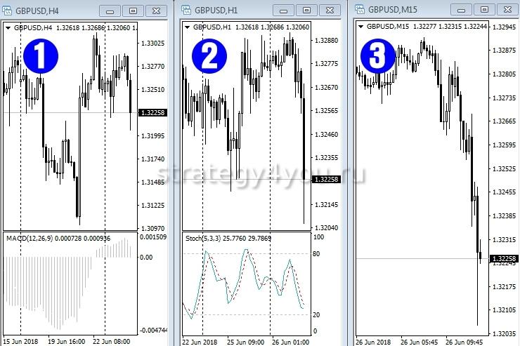 Основная задача системы — отфильтровать мусор и сосредоточить внимание только на выгодных предложениях рынка. На экраны выводятся графики с разным временным промежутком — показатели на втором экране должны разниться с 1 и 3 на одинаковый таймфрейм, но в разные стороны.