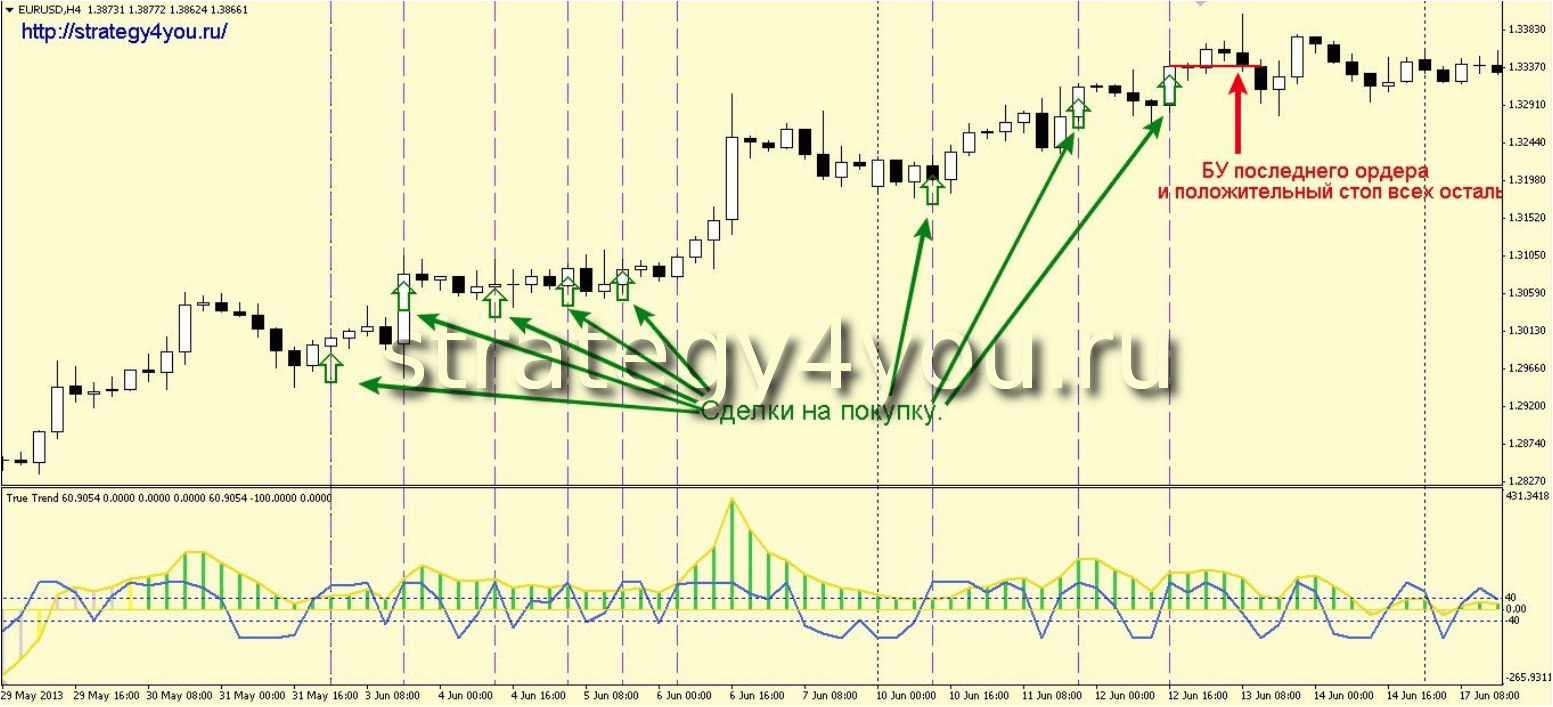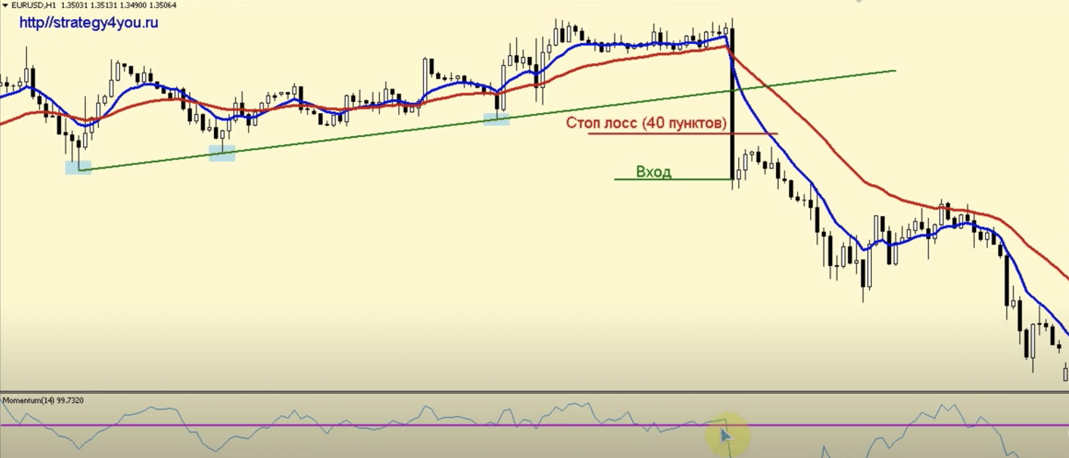 | Стратегия форекс на скользящих средних «Пробитие тренда» | Примечание Смотрите все комментарии |