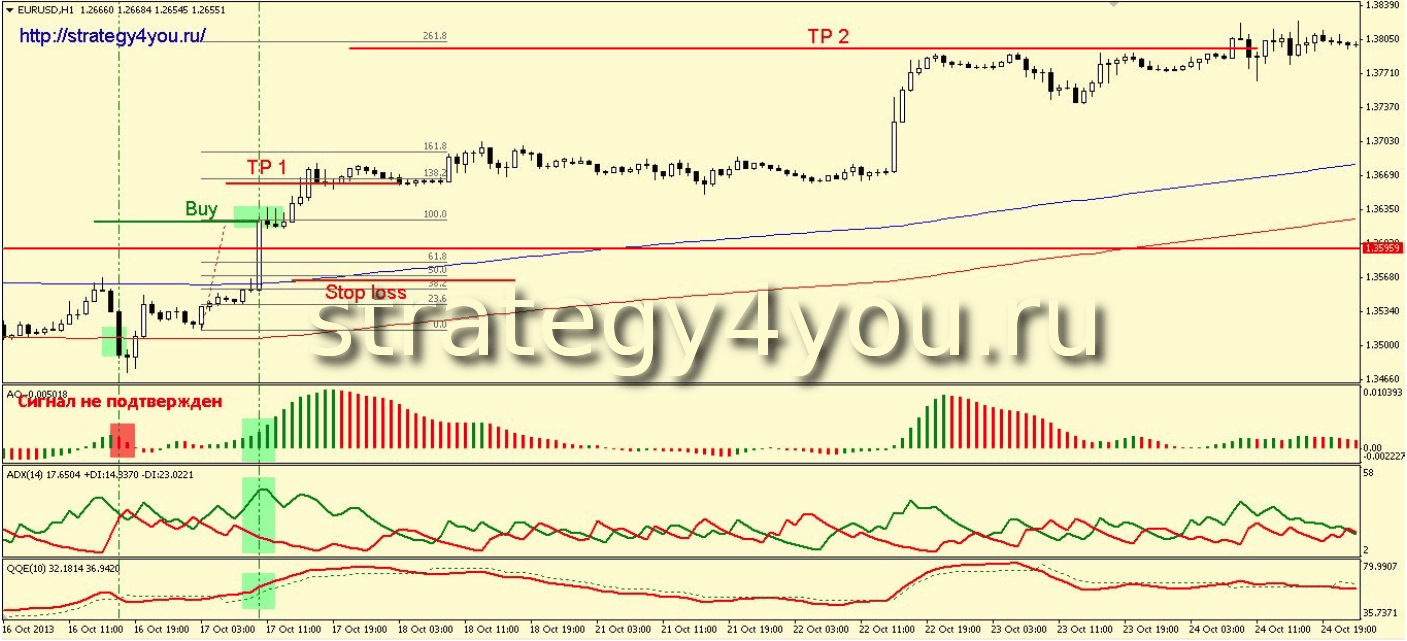 | Примечание Комментарий > «Посмотрел вашу стратегию, очень хорошая стратегия. Проверил некоторые сигналы по истории на eur/usd. Критерии выхода можно использовать уровни фибо 100 ,123,6 ,161,8 (если натягивать её наоборот). второй вариант это выход стохастика на h4 из ПП или ПК смотря в какую сторону торгуем. В одной стратегии нашел усиление для стохастика, на 5/3/3 надеваем 14/3/3 (сигнальную берем белой(невидимой) основную по желанию но поярче) и торгуем по 14-той. сигнал по ней — выход из перепроданности на младшем ТФ, М15 или М5.( сигнал для входа, так же можно и выходить). Еще момент над которым надо поработать, так как я не спец — это волновой анализ. потому что если входить на 5 волне то можно не надеятся на большие прибыли…максимум 100 или 123.6 фибо. на 3 волне можно тянуть и до 161.8 Вообщем как то так, извиняюсь что все не четко, но кто поймет тот поймет) и s/l увеличить до пунктов 50.» |