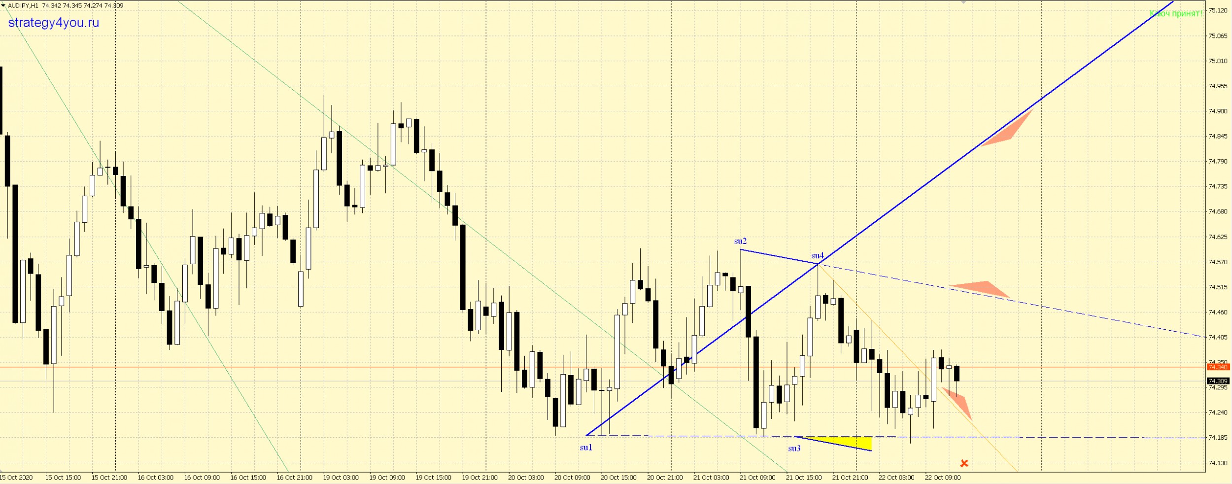 ВВ по AUDJPY, сигнал уже подтвержден, стоп около 20 пунктов, профит на рисунке: