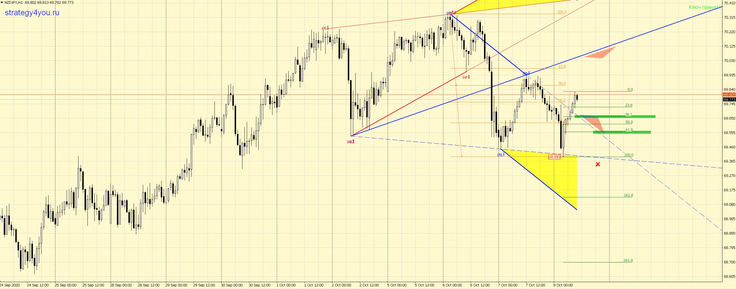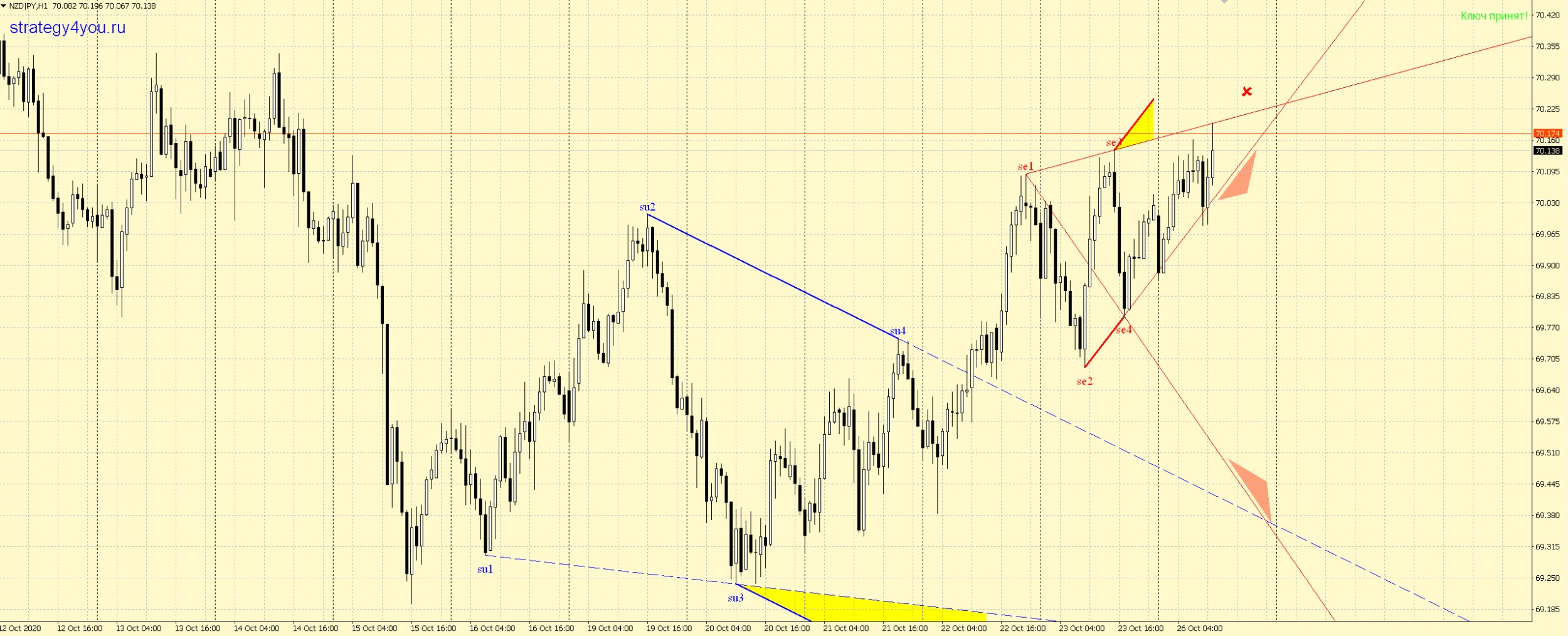 ВВ по NZDJPY — выделил сигнал входа, установки стопа и профита на графике. Остается ждать сигнала (пробой + ретест + отбой от линии 2-4):