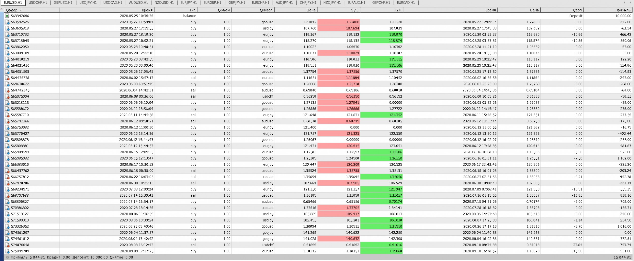Причем следует учитывать, что в отчете только основные пары и основные кроссы, сейчас их добавили больше и будем следить за большим кол-вом пар. Входы и выходы согласно граф анализа и курса по ВВ (то есть не классический — отбой от точки 5), а именно сигналы с подтверждением на интервала H1 (ниже не торговал).