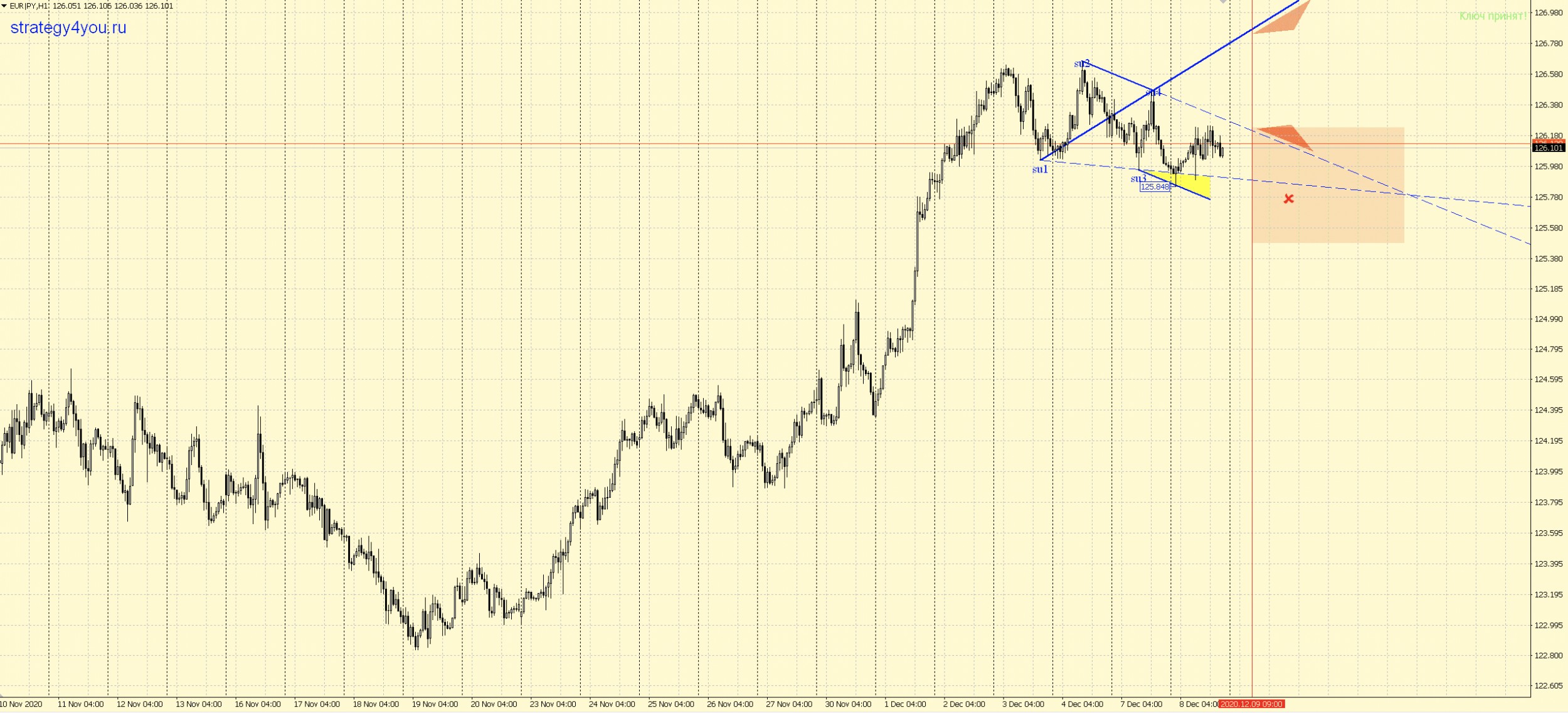 EURJPY H1 — сформирована ВВ, выделил сигнал на завтра утро — с 9.00 по времени терминала: