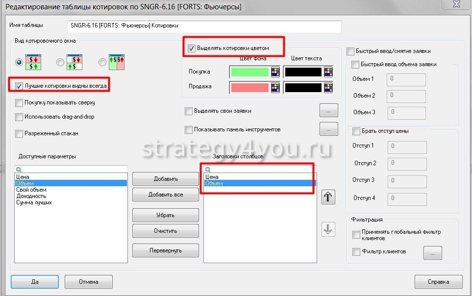 Стакан в Quik имеет гибкие настройки, поэтому каждый трейдер может максимально адаптировать инструмент под свои требования: