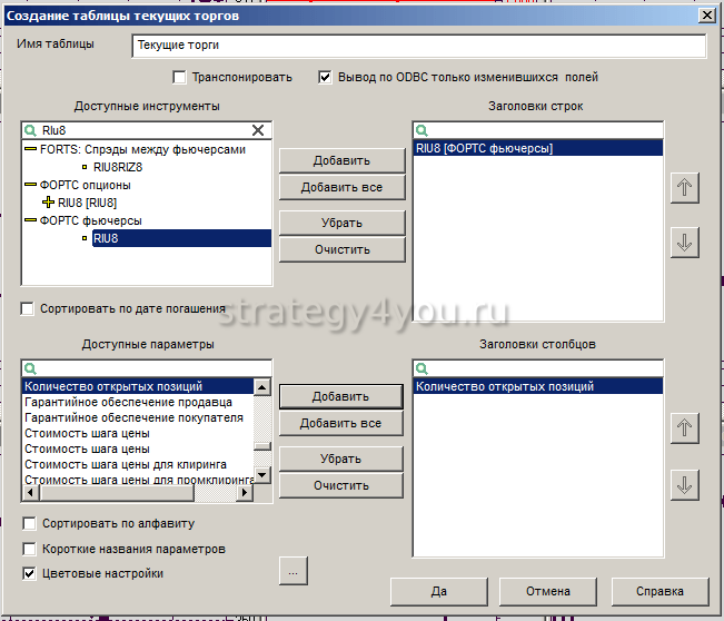 Настройка индикатора открытых позиций в торговом терминале Quik