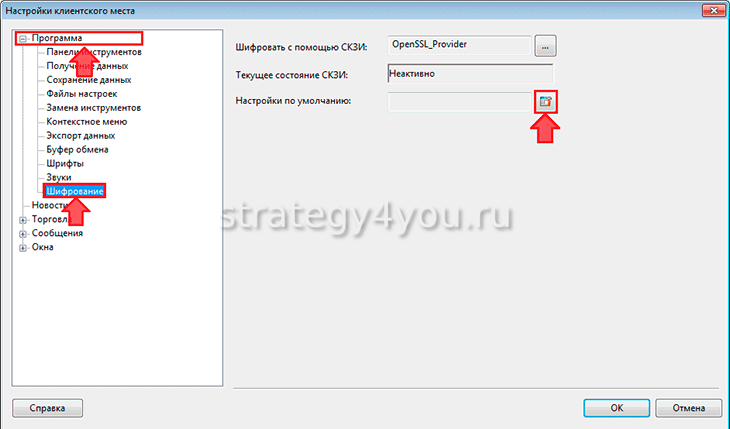 Как сменить способ шифрования в Quik: