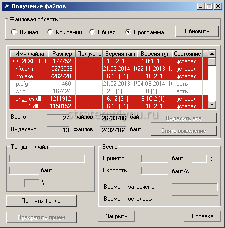 - Ручное обновление – переход «Система/Получение файлов», далее в разделе «Файловые области/Программа/Обновить/Принять файлы».