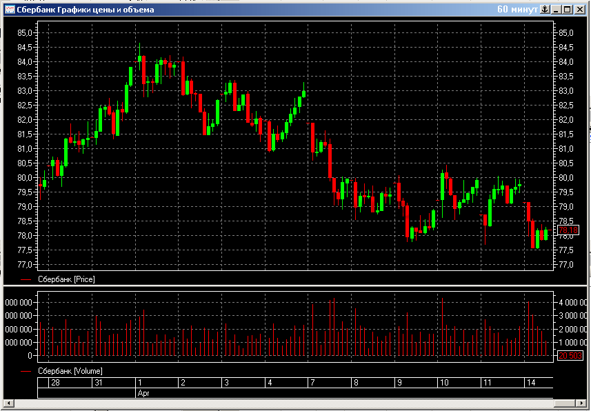 - Показ динамики изменения разных параметров по инструментам на графиках с техническим анализом.