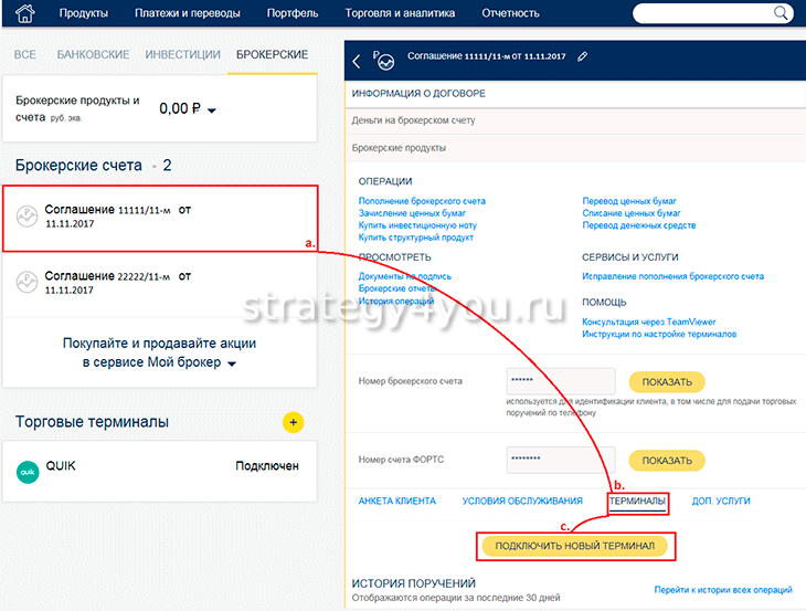 - Вход в личный кабинет у брокера.