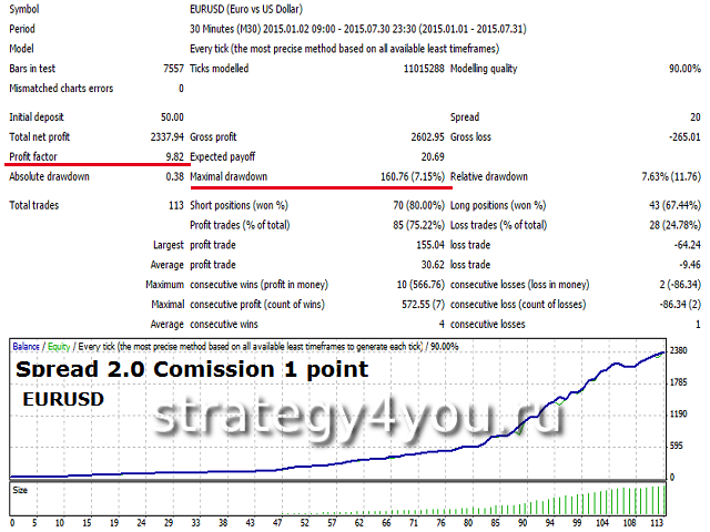 - Тест по EURUSD за 2015 год по текущую дату — другие параметры: