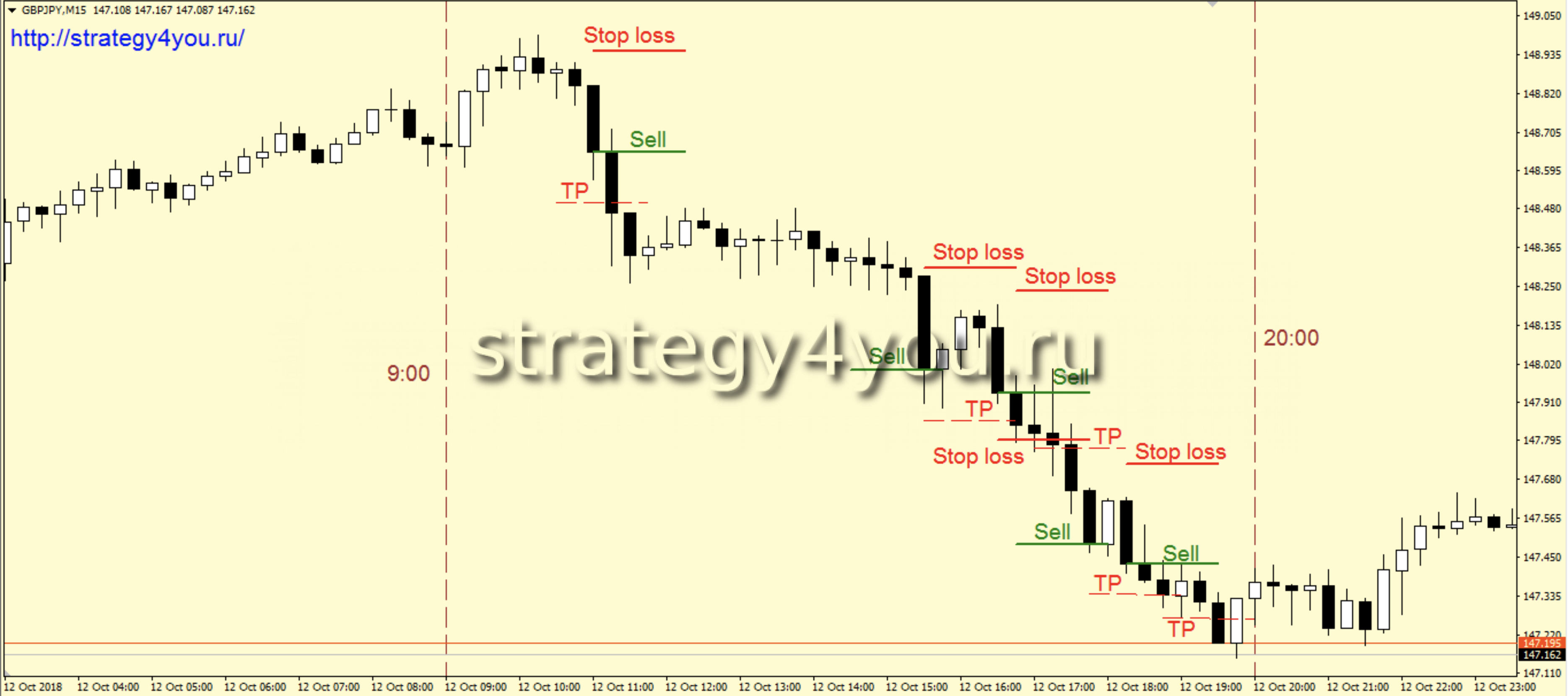 6) Если в 20:00 еще имеются активные сделки, то их следует перевести в безубыток, даже если сделка находится в отрицательной зоне (в этом случаи профит переставляем в точку открытия!)