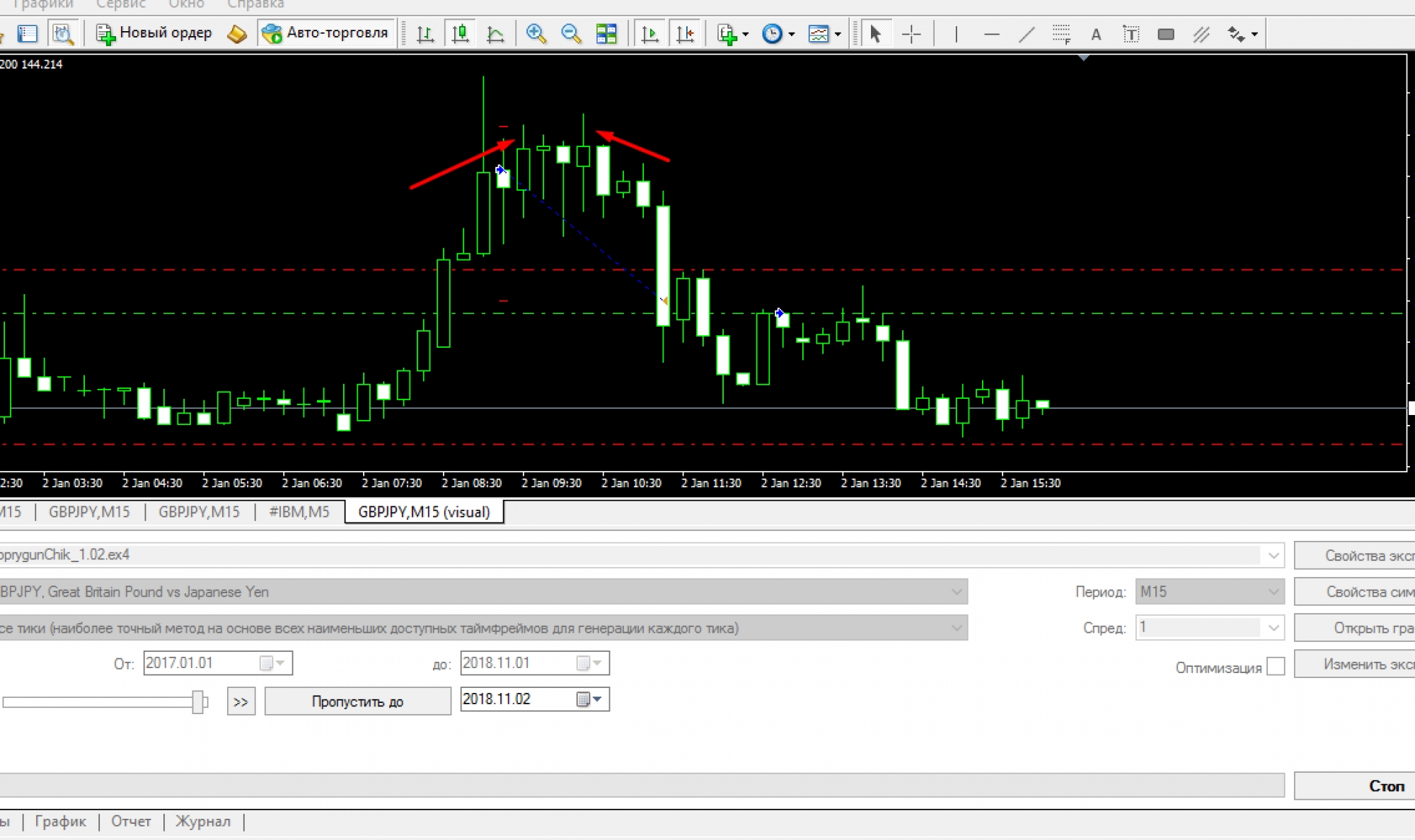 Пусть размер свечи будет лишь ещё одним доп фильтром, а основой — получение этой свечи в откате от основного тренда, тем самым ожидается что свеча с определённым размером должна как раз дать импульс на возобновление Тренда. Логика думаю понятна! Использовались варианты с разными индюками, но так как пара и действительно сверхвалатильна вразумительного результата не получилось! Времени долго гонять по тестеру не было возможно не все были варианты испробованы, уж точно нужно было испробовать другую пару без фунта,как вариант! Именно про такие варианты я имел ввиду когда говорил что нужно что испробовать новое