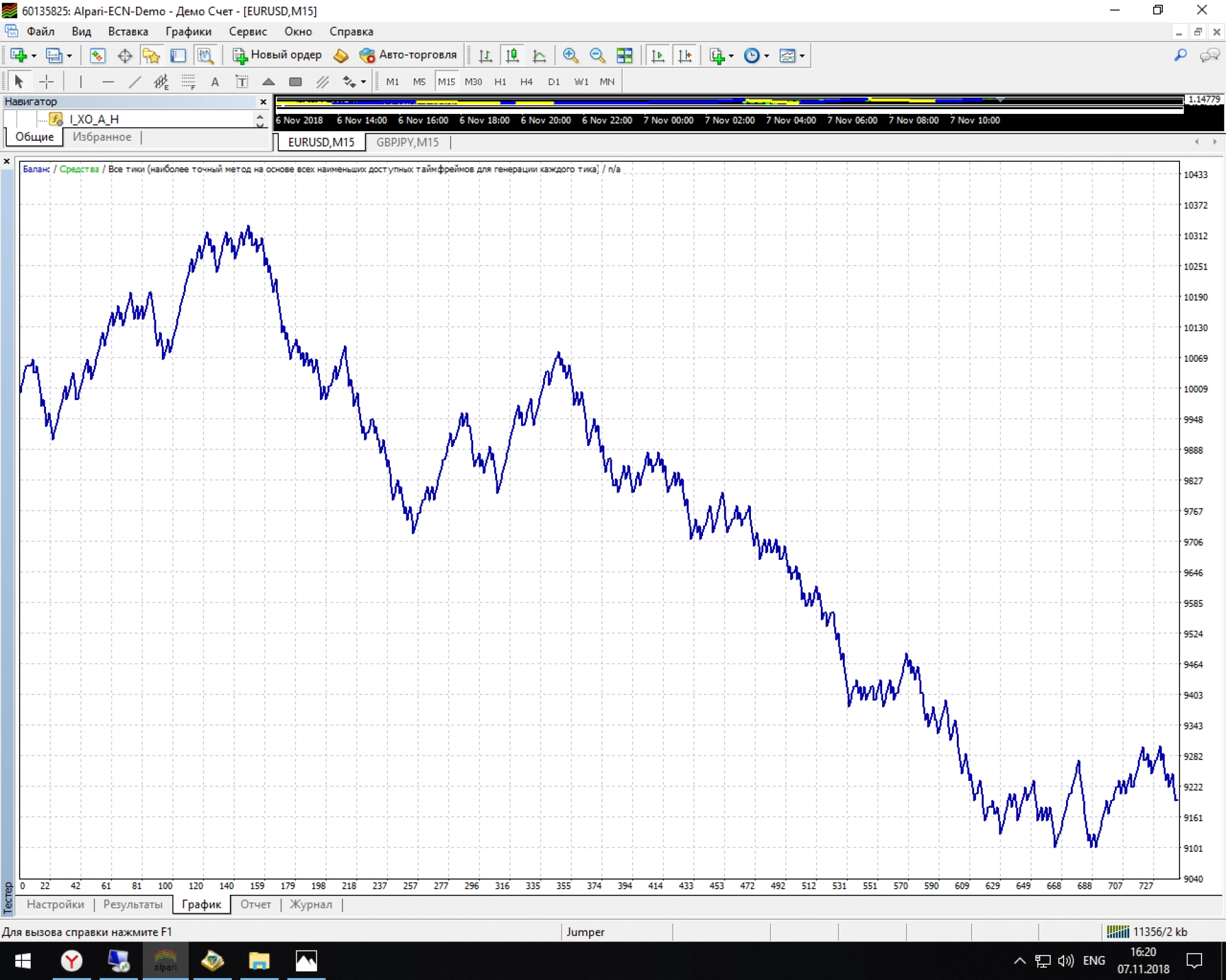 Как писал ранее, вот результаты сетка + антимартин. График конечно красив, хоть щас памм открывай, но просадка то 73 % !!! кстати приходится на вторую половину октября, до этого максимум 45 была и это на 10 000 депо при условии что мы не выводили!!! Такая торговля уж точно не по мне!!! На графике в конце видно что в ноябре пока просадка…