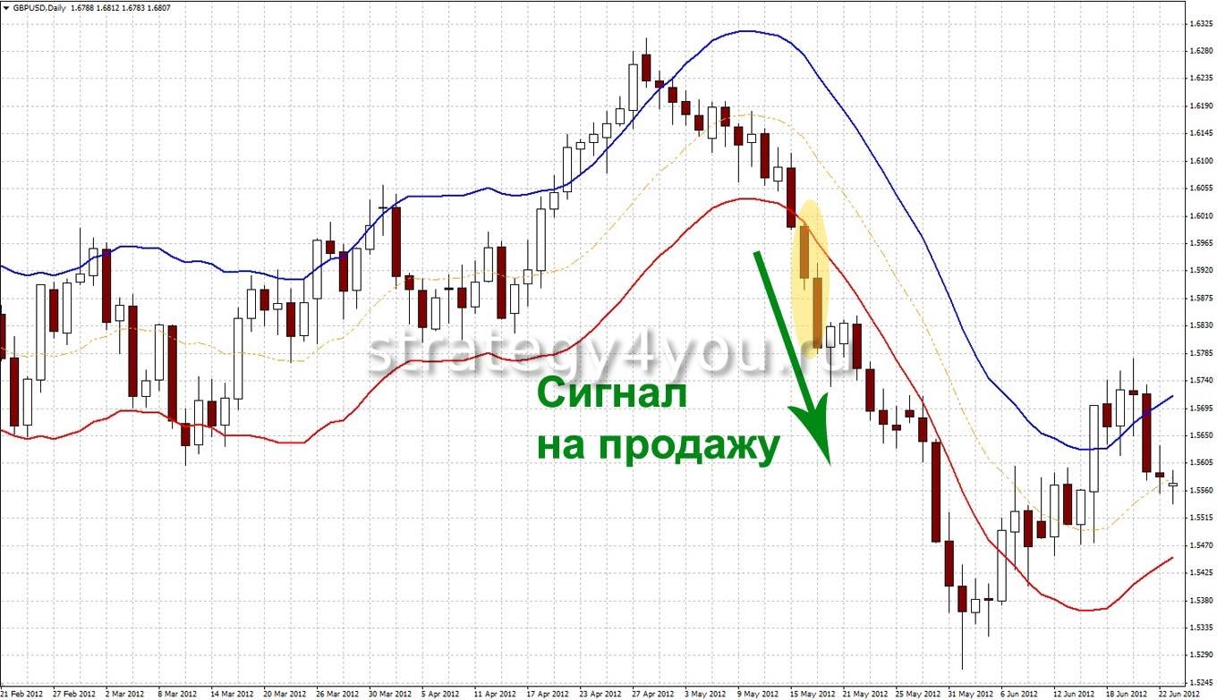 - Технический индикатор Envelope с параметрами 20 и 0,1.