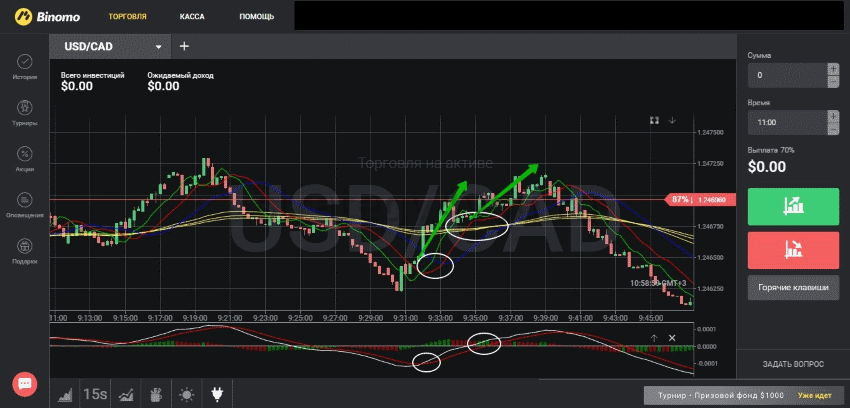 Чтобы оформить контракт с направлением «вверх», следует учитывать такие типы индикаций: