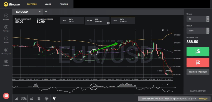 Она принадлежит к индикаторной категории и обеспечивает точную генерацию сигналов для 1-минутных ставок.