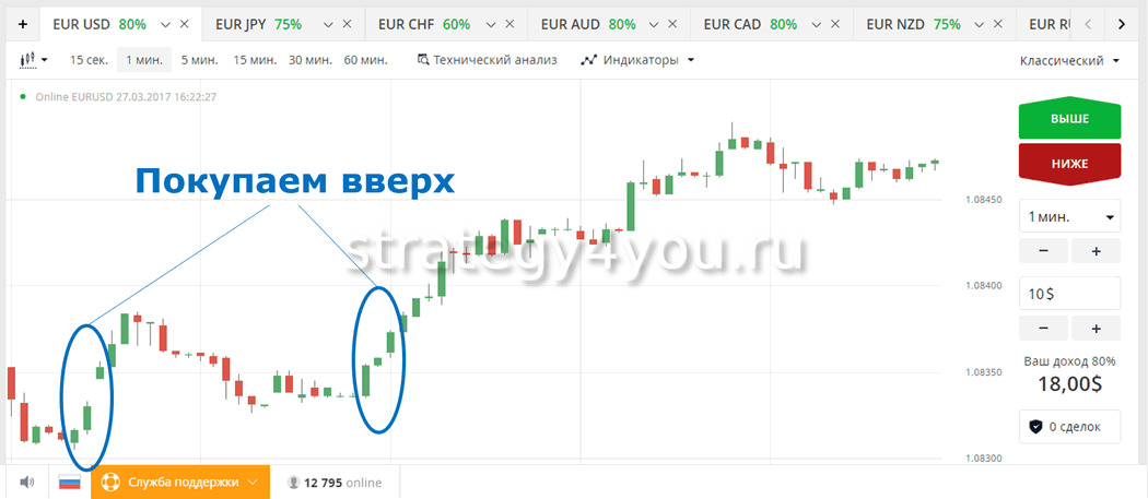Способом усовершенствования бинарных опционов стратегии на 5 минут считаются подтверждающиеся совпадения тенденции на старшем тайм-фрейме. Профессионалы не торгуют по тренду на малых интервалах, пока не получают доказательства на высоких.