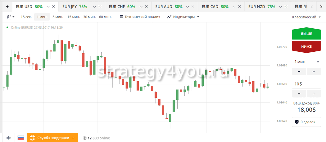 - повышенная прибыльность опциона «Выше/Ниже» — от 100 до 250%;