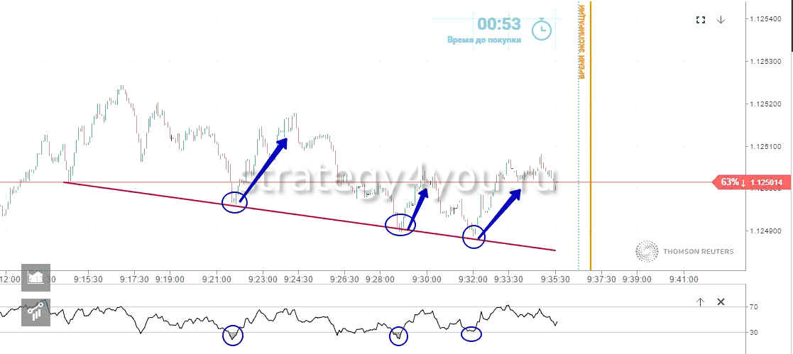 При подготовке к торговле учитывают, что у подобной стратегии есть нюансы и получить точности сигналов 90% и выше возможно при открытии сделок на время завершения контракта до 5 свечей. Рынок при этом должен находиться в стабильном положении (нет резких колебаний), иначе стратегия не сработает.