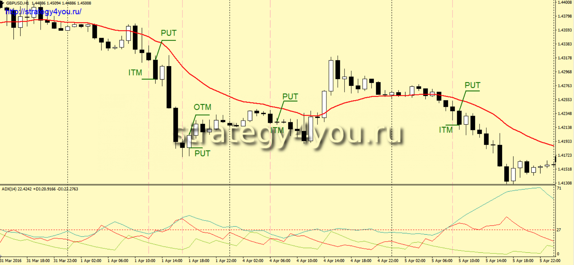 - Индикатор ADX с периодом 14.