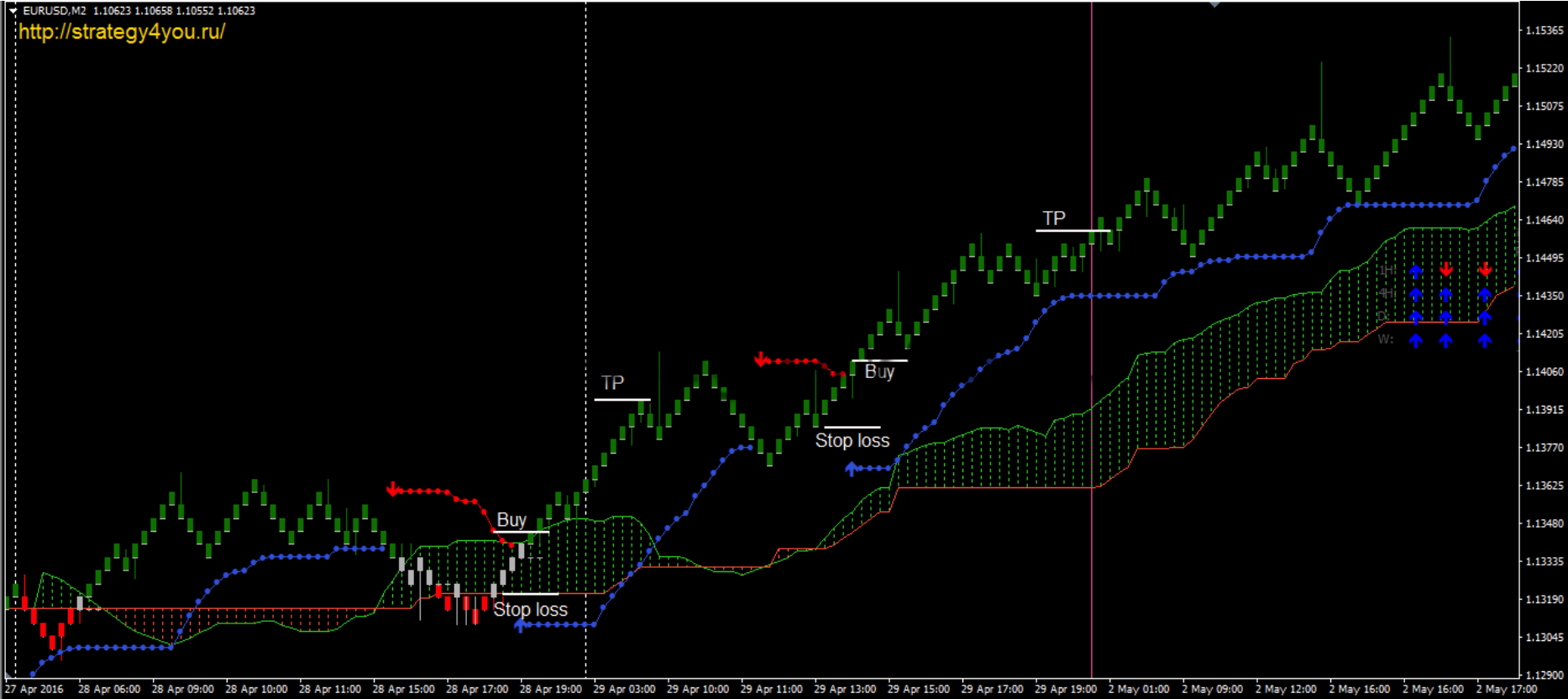За проверенный период (1 апреля – 29 июня 2016 года) стратегия показала положительный результат около +680 пунктов, только по одной валютной паре. Следует отметить, что изначально нужно быть готовым получать довольно часто небольшие отрицательные сделки (чаще всего от -5 до -15 пунктов, реже полный стоп -25 пунктов).