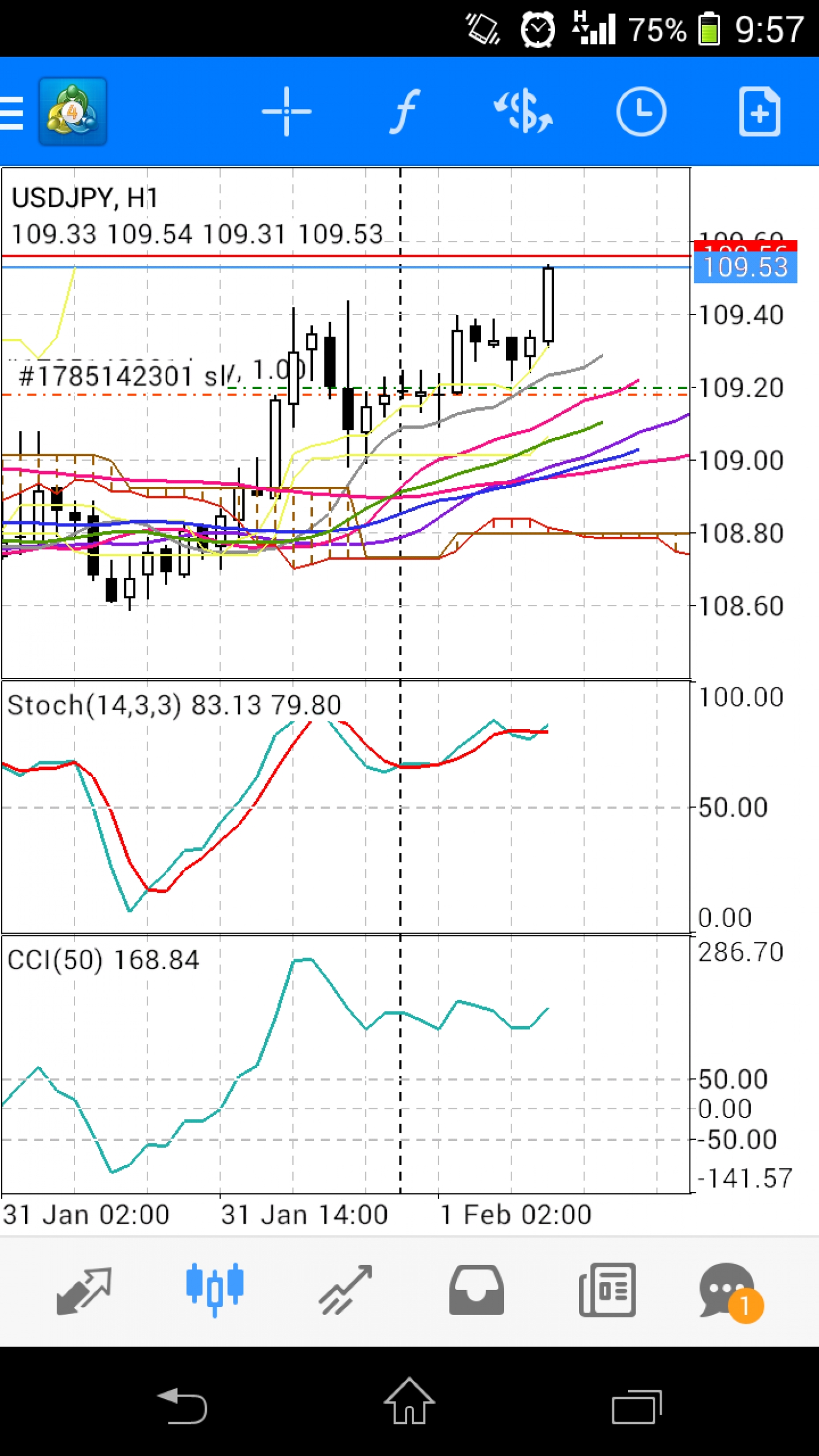 - CCI с периодом 50 и с добавленными уровнями 50 и -50.