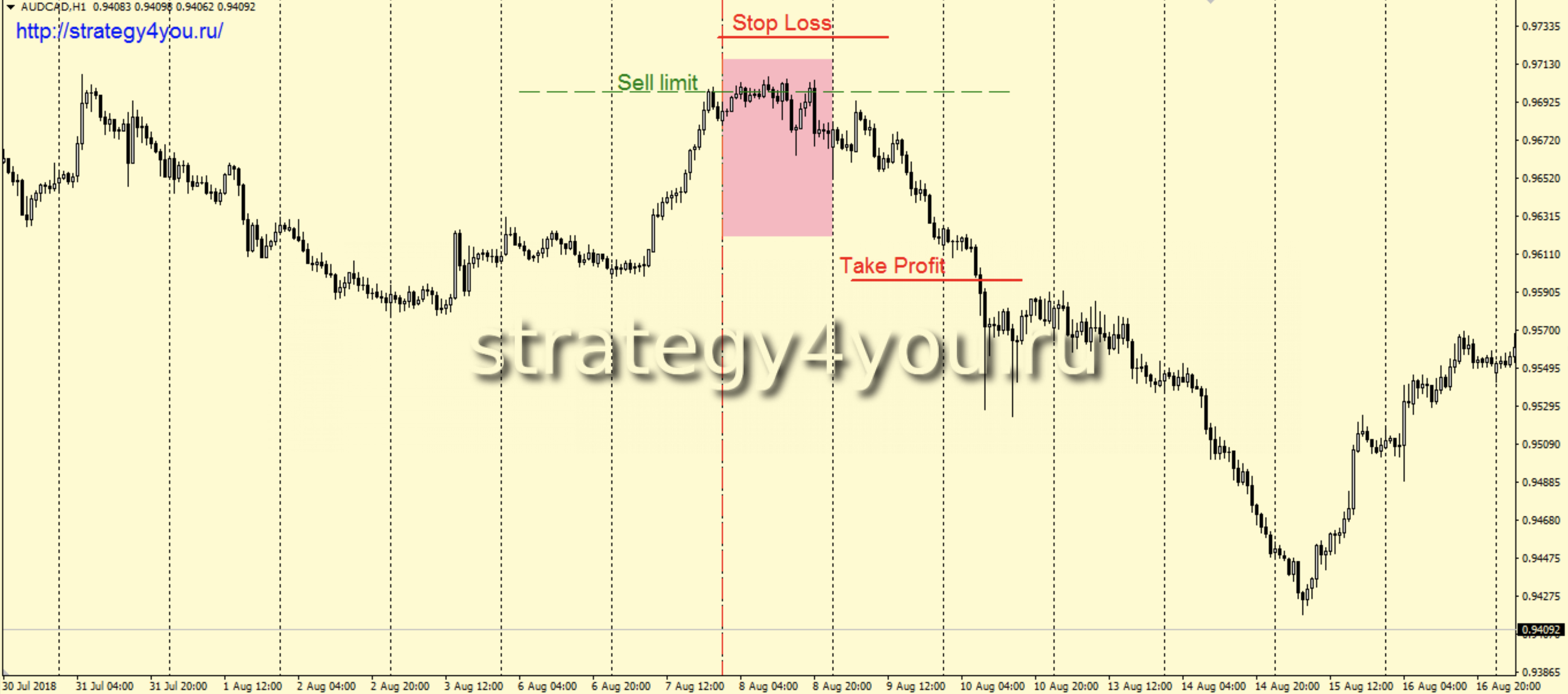 5) На H1 по максимальной цене закрытия H1 свечи, которая зафиксировала максимальную цену закрытия в течении всего предыдущего дня, следует установить отложенный ордер на продажу — Sell Limit.