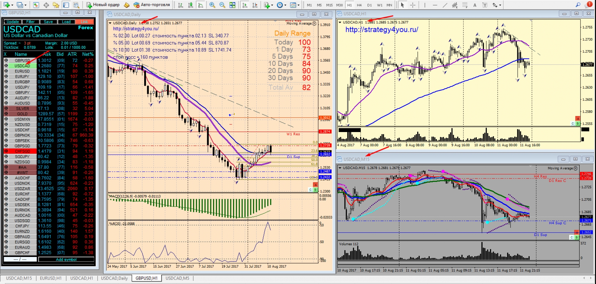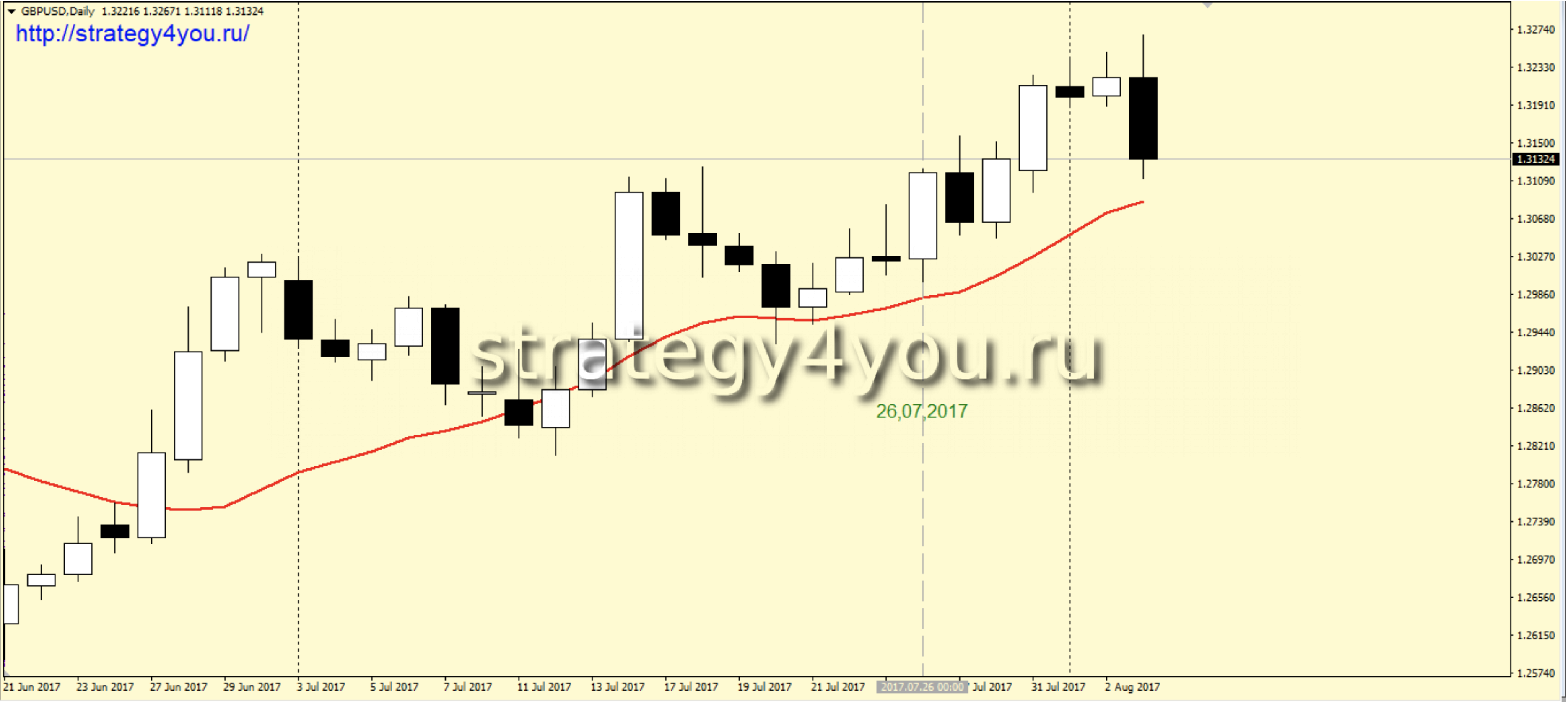 Так же по утверждению автора, стратегия по каждой валютной паре в среднем приносит в месяц около 4%, что с учетом 6 валютных пар, дает результат в районе 24%. Мы проверили только две пары (EUR/USD и GBP/USD) и в принципе за период с января по август 2017 года указанные авторам данные практически подтвердились. Имелся месяц и с нулевой прибылью по одной из пар и небольшие убытки так же были. Однако в целом по ТП закрывается довольно значимая часть сделок.
