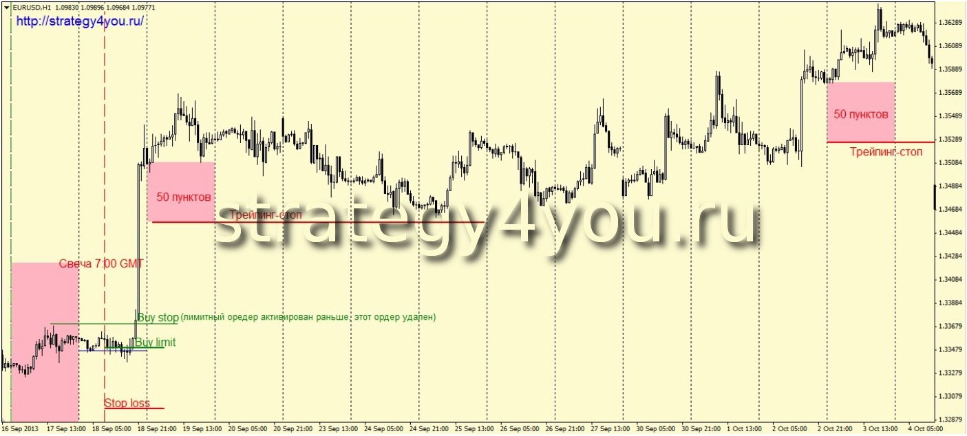 4) Страховочный ордер Стоп-лосс при любом варианте входа равен 50 пунктам.