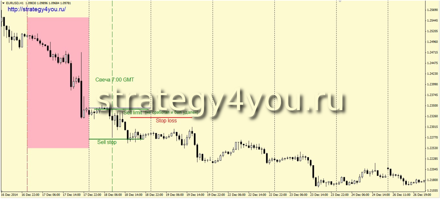 Применяются следующие варианты входа для продаж:1. С начала вчерашнего дня (сигнальный день на Д1) и до 8:00 GMT текущего дня нужно выявить минимум. Ниже этого минимума устанавливается отложенный ордер Sell stop. Если он активируется первым, то прочие (о них сказано ниже) методы не применяются.