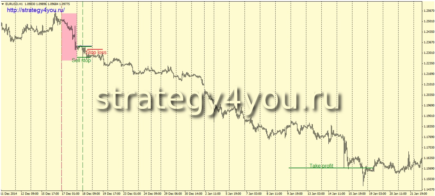 Если таковой является последняя закрытая свеча, то ордер не следует устанавливать. Если цена движется после этого вверх, то мы ждем формирования первой черной свечи и открываем сделку на продажу на ее закрытии. Если же цена пойдет вниз, то там сработает наш отложенный пробойный ордер Sell stop.