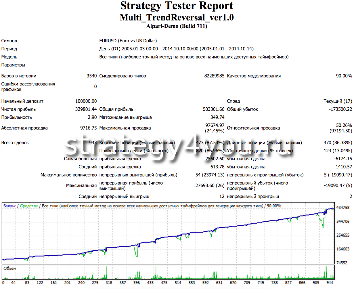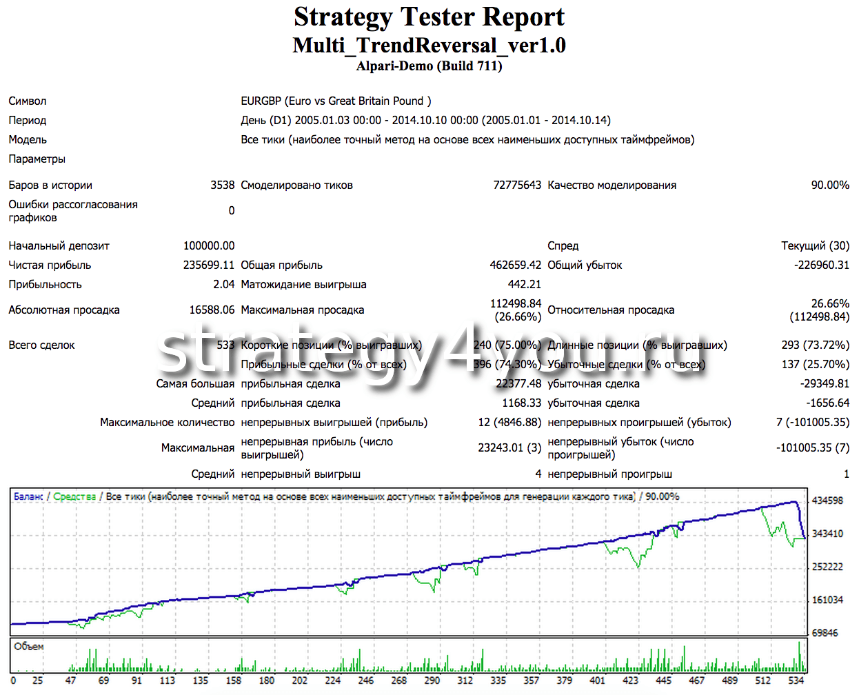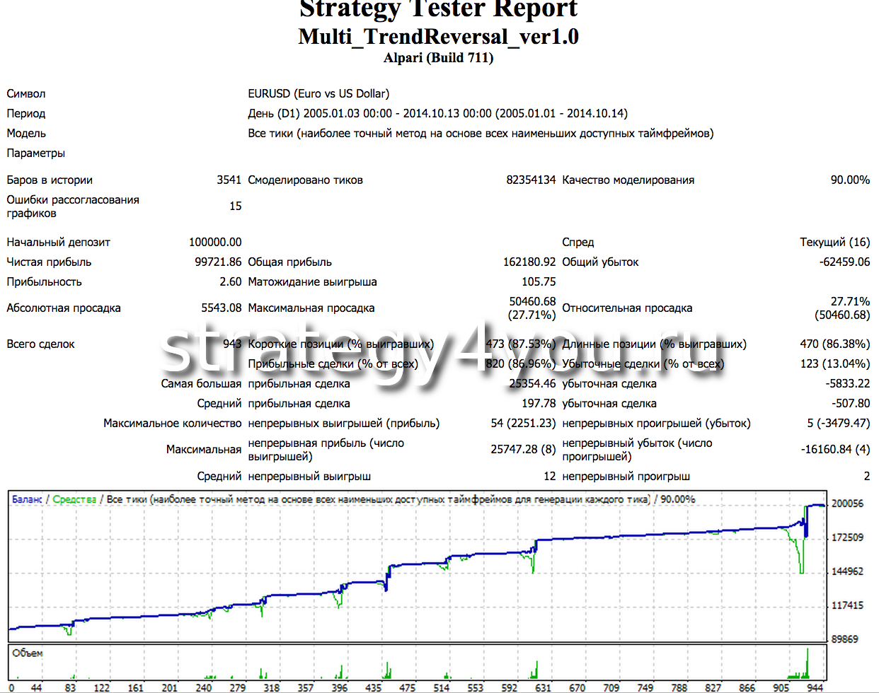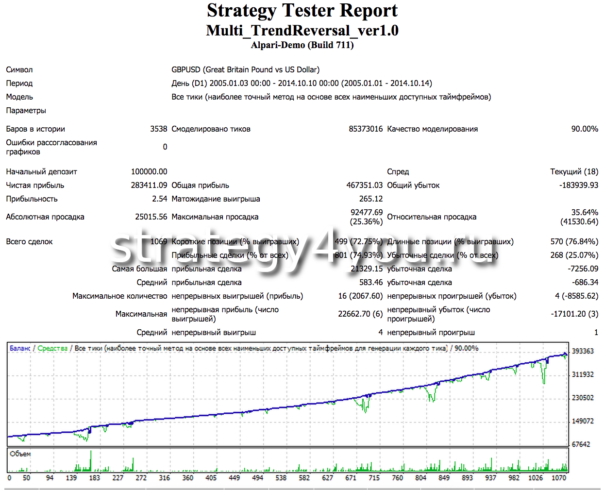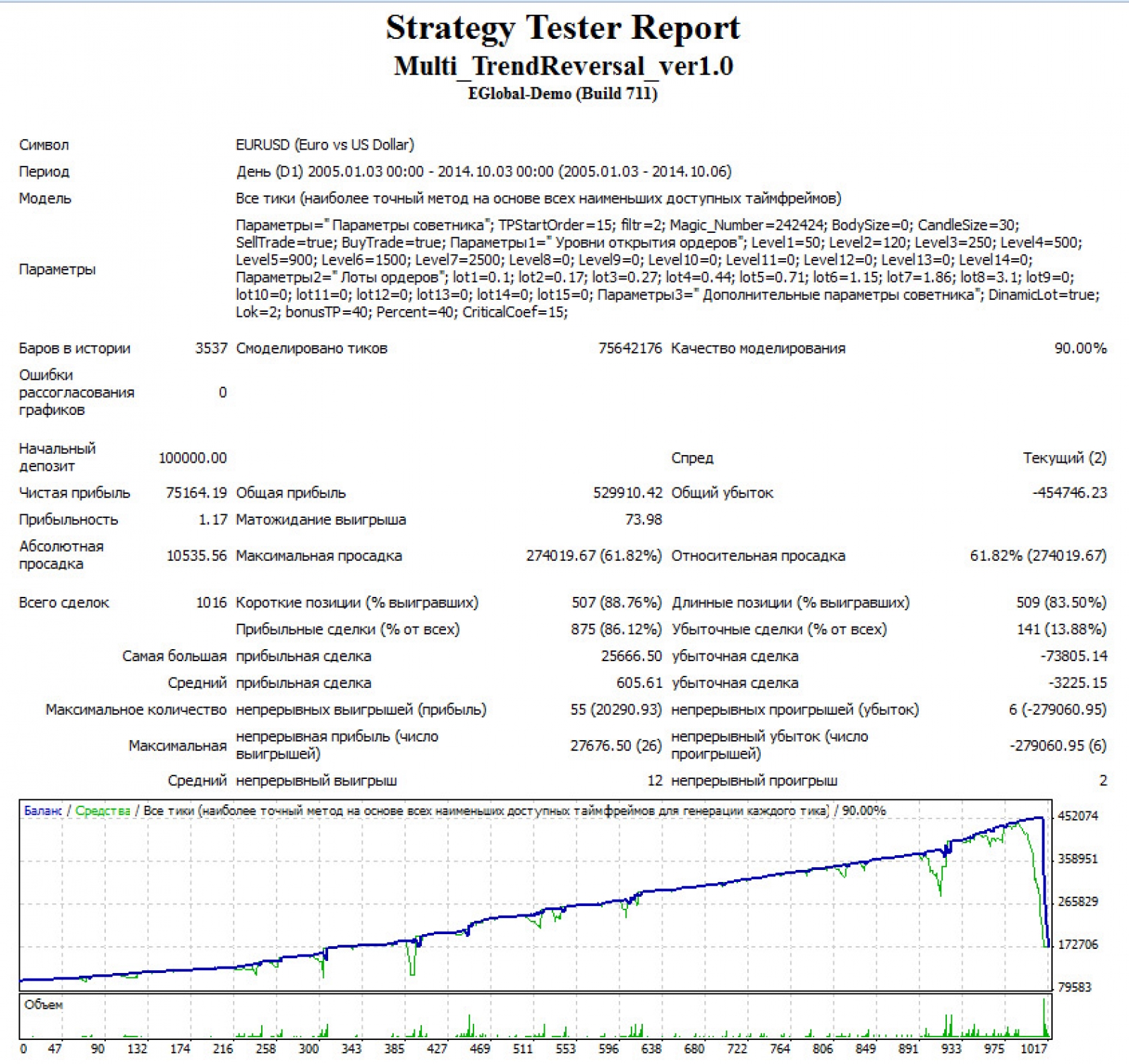 Отчеты о работе советника форекс Multi_TrendReversal (с 2005 года):