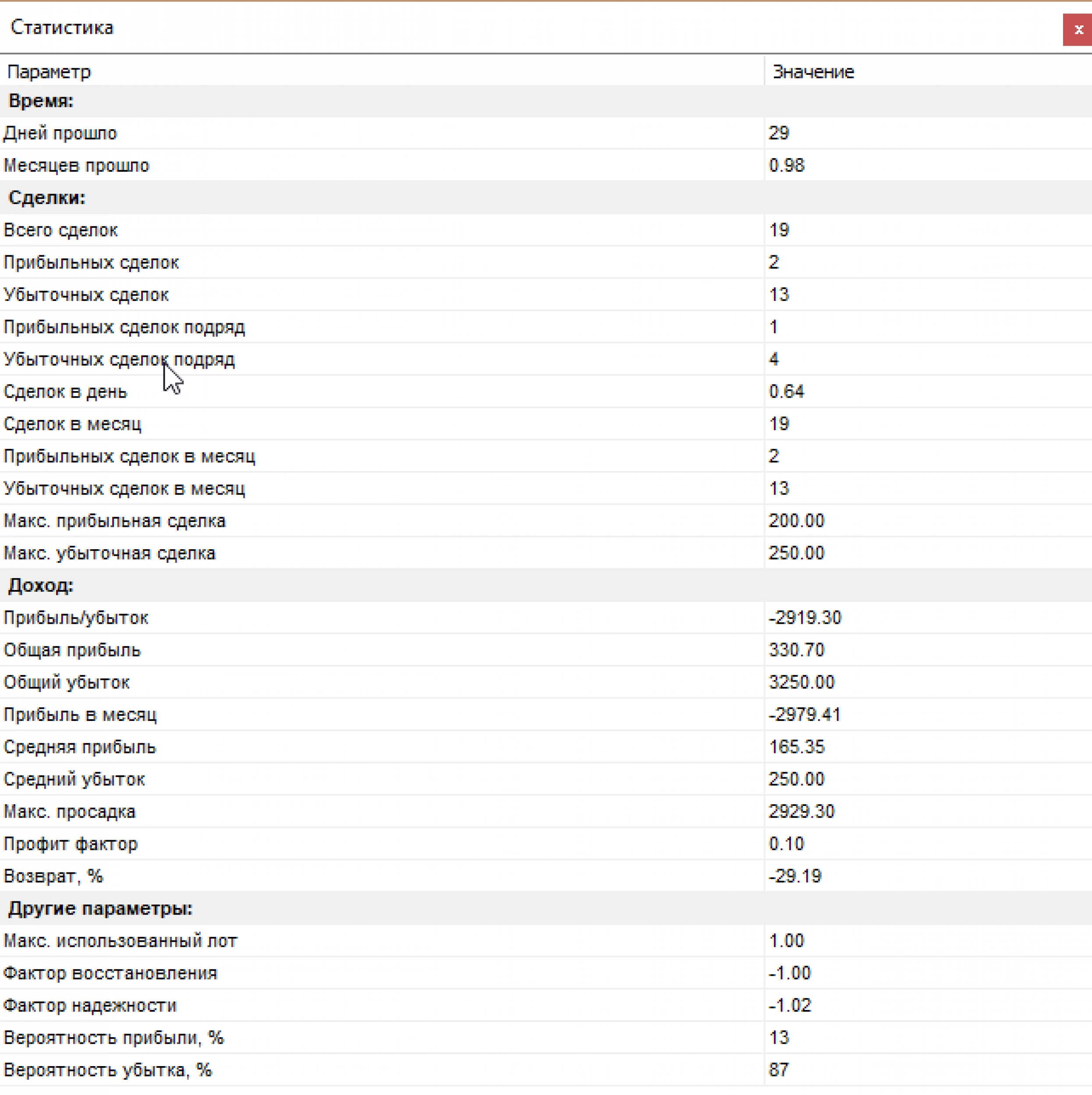 12) Если на момент закрытия торгового дня сделка все еще не закрыта по условиям, описанным ранее, то она закрывается по текущей рыночной цене вручную!
