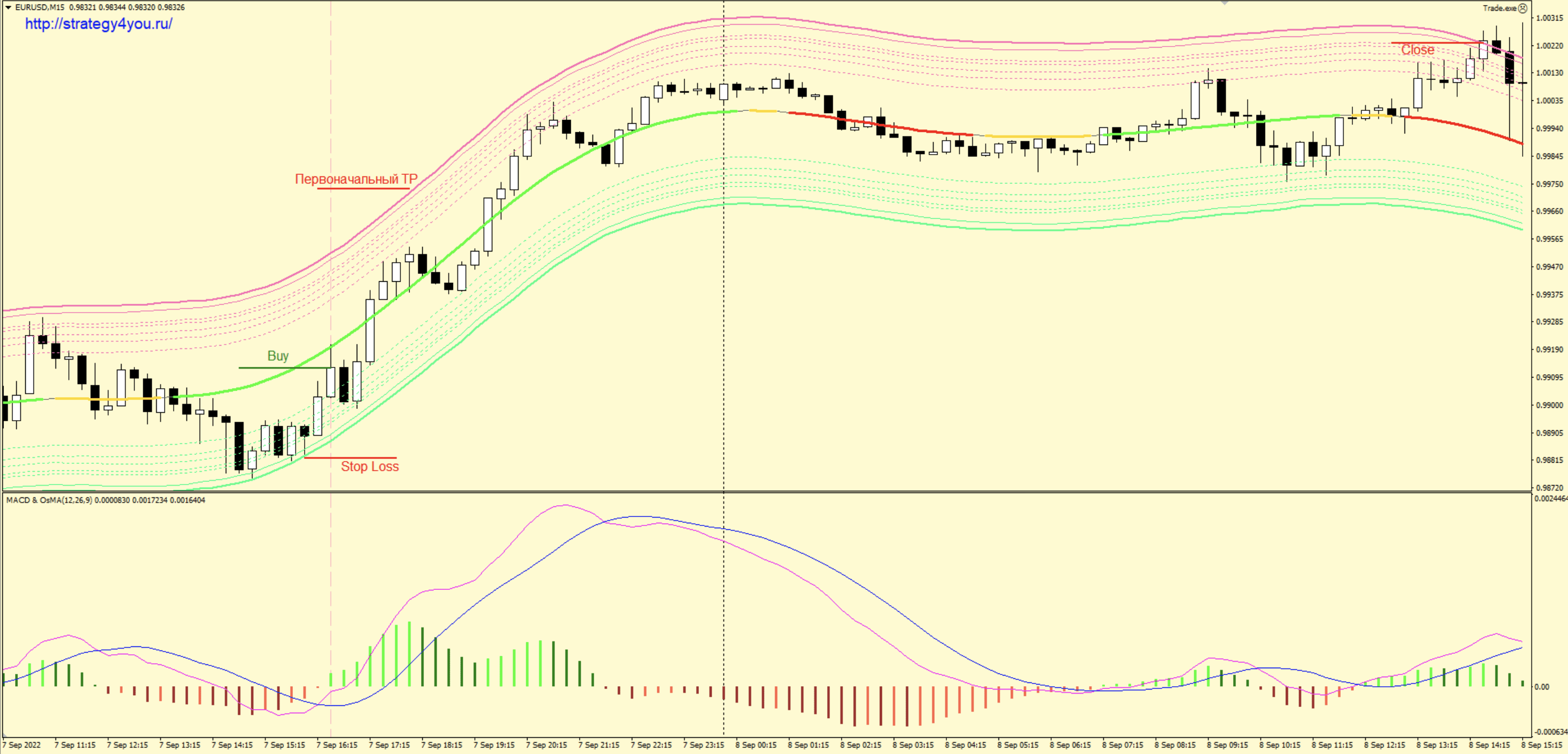 - Индикатор GCC3 (MACD&OsMA) с параметрами 12; 26; 9.