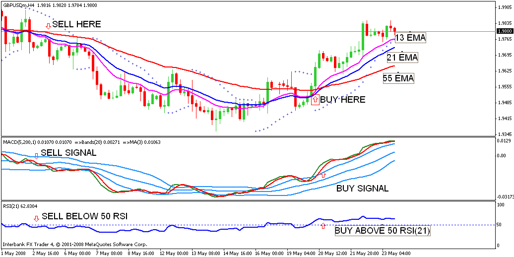 На рисунке показано 2 сделки. По первой вопросов нет (sell), а вот по второй есть. Почему вошли в сделку, когда EMA еще не пересеклись? 21 и 13 EMA пересеклись, но они еще должны были пересечь 50 ЕМА. Если бы вошли по всем правилам, было бы — 100-140 пп.