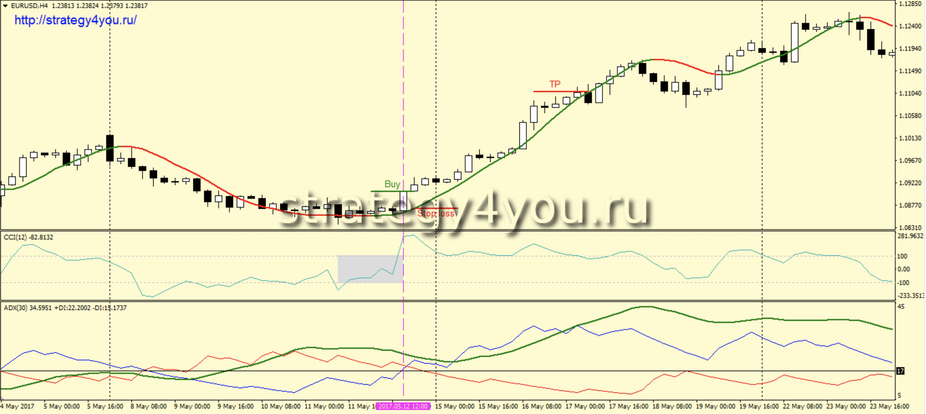 3) Основная линия индикатора ADX находится выше своего уровня 17.