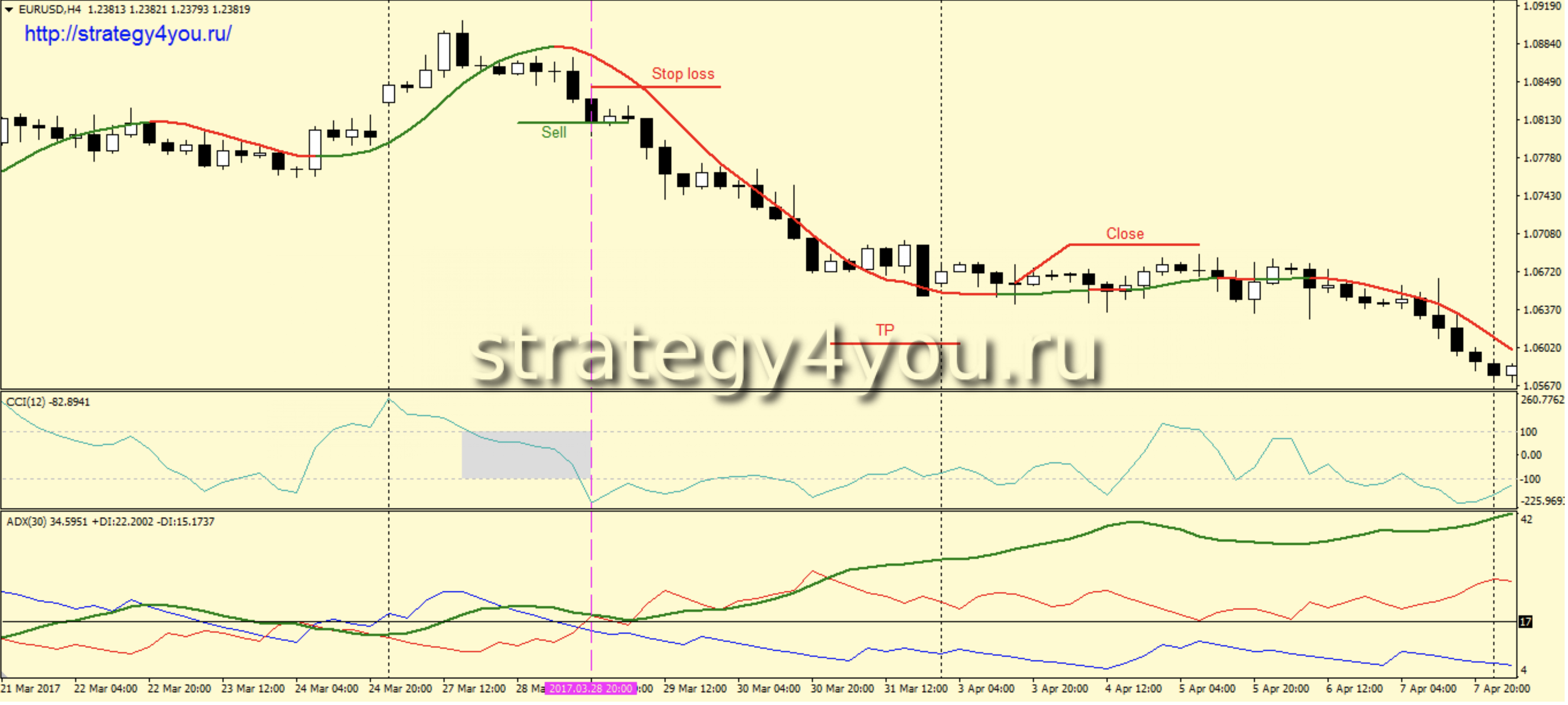 5) На открытии следующей H4 свечи заключаем сделку на продажу.