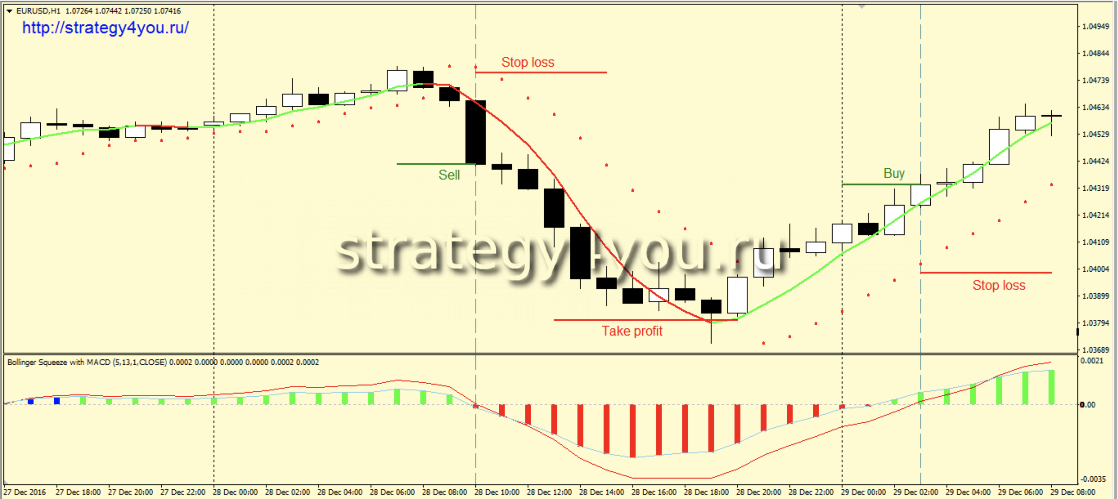 За прошедший год (2016 год) стратегия показала положительный результат чуть больше 1800 пунктов (для 4-х знака). Октябрь и ноябрь 2016 года стратегия прошла не лучшим образом, однако все равно и за этот период был показан минимальный, но плюс. Так же стоит отметить, что сделки по данной системе бывают довольно часто (более 180 сделок за весь год).